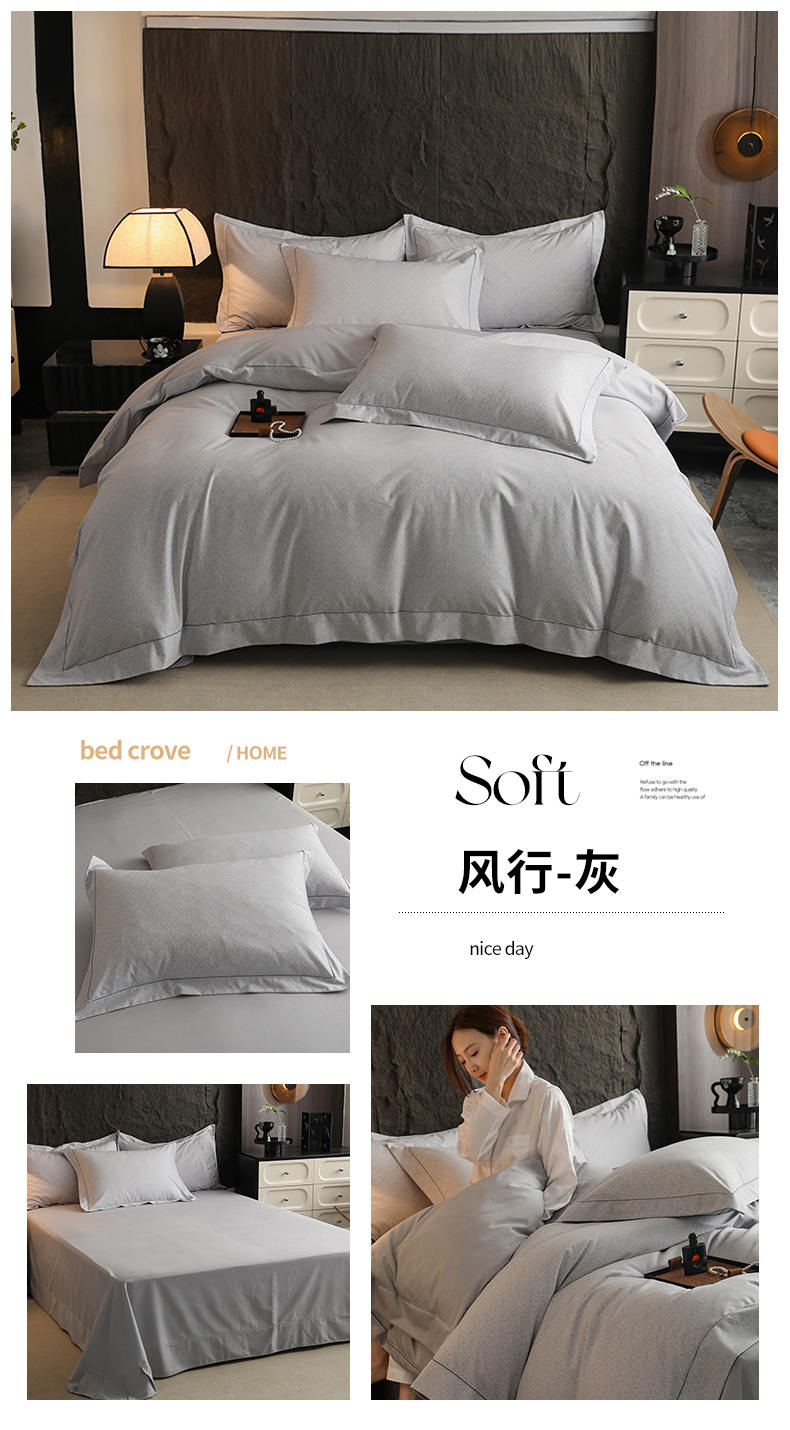 商品名称:巧玲珑 2025新款60支高端美式新疆棉四件套 风行-灰