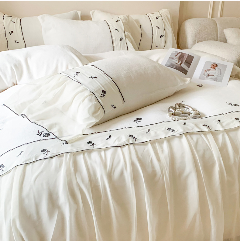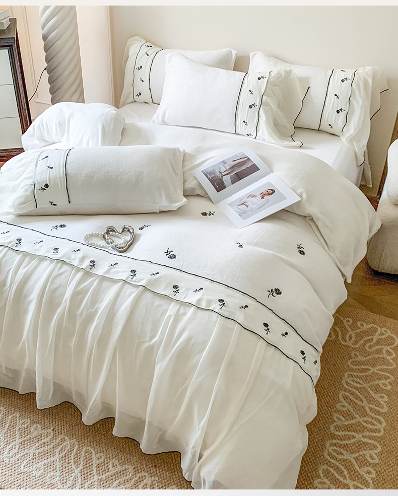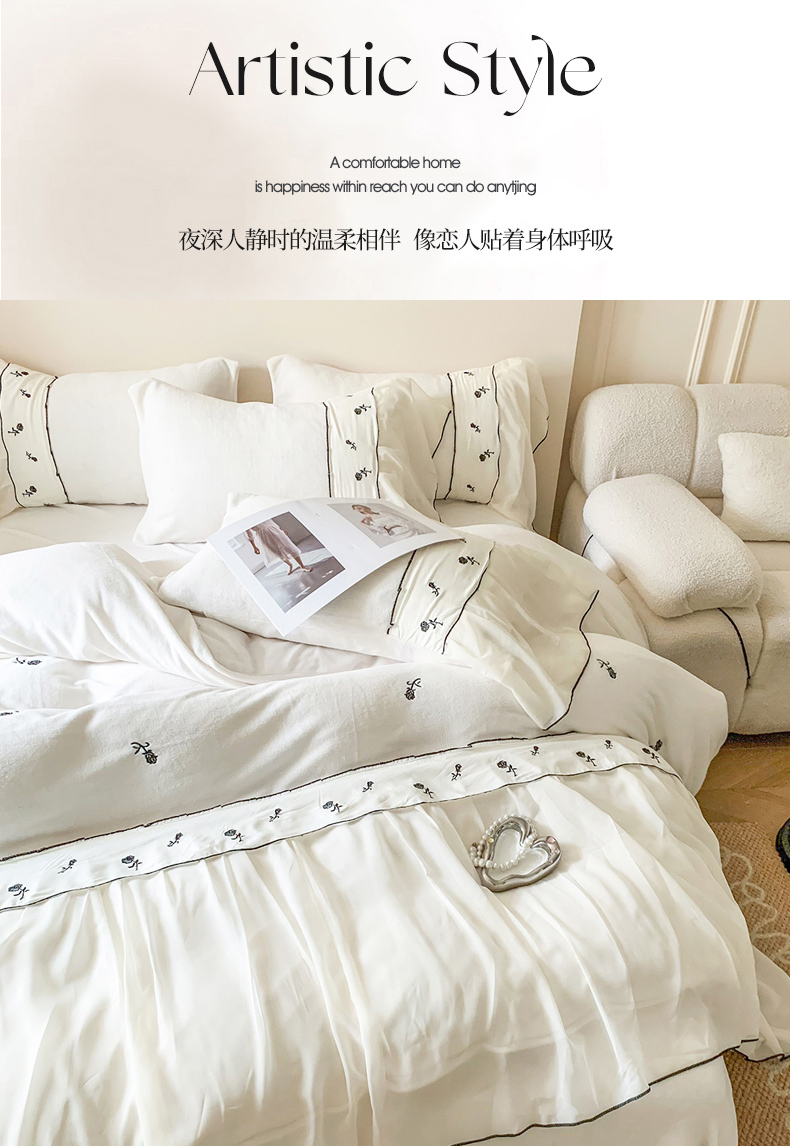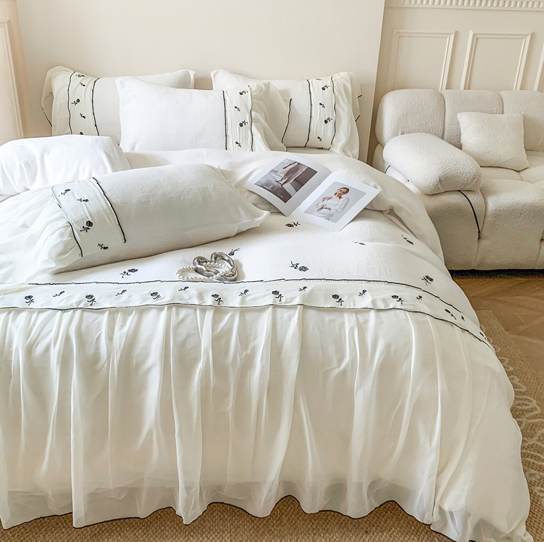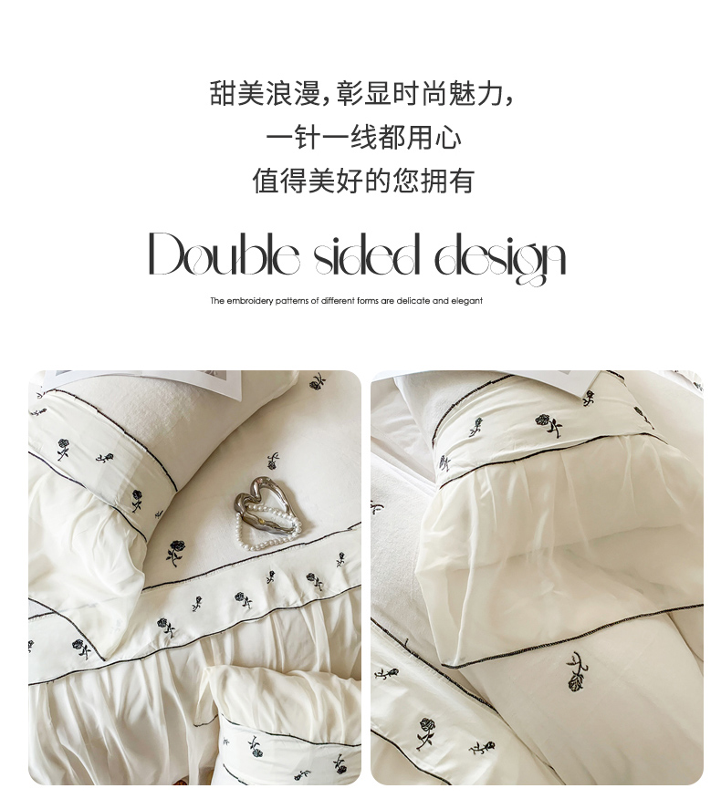 当前位置: 91家纺网 > 商品网购 > 床品套件 > 四件套 > 牛奶绒四件套 > 你好美丽 2025新款200克A类牛奶绒蕾丝花边工艺款四件套 浪漫白黑
