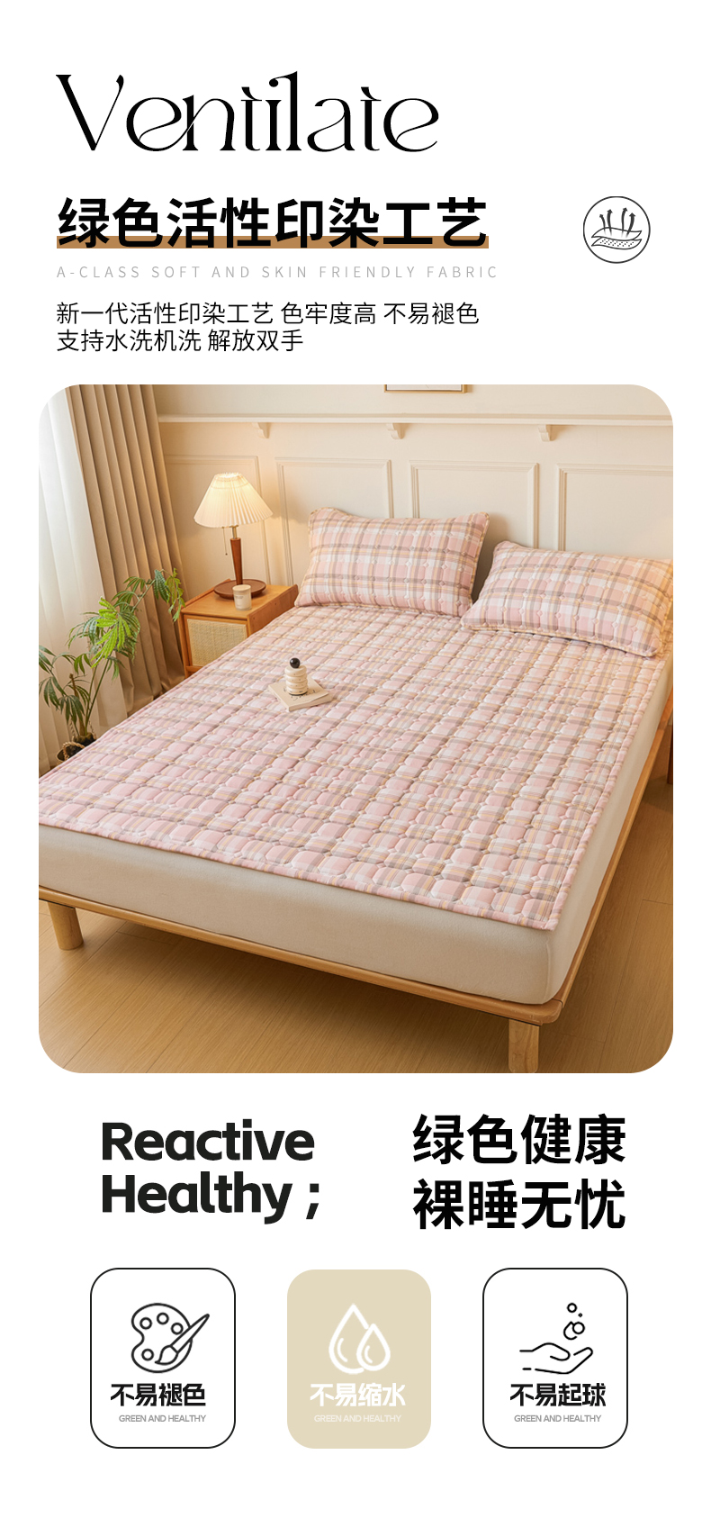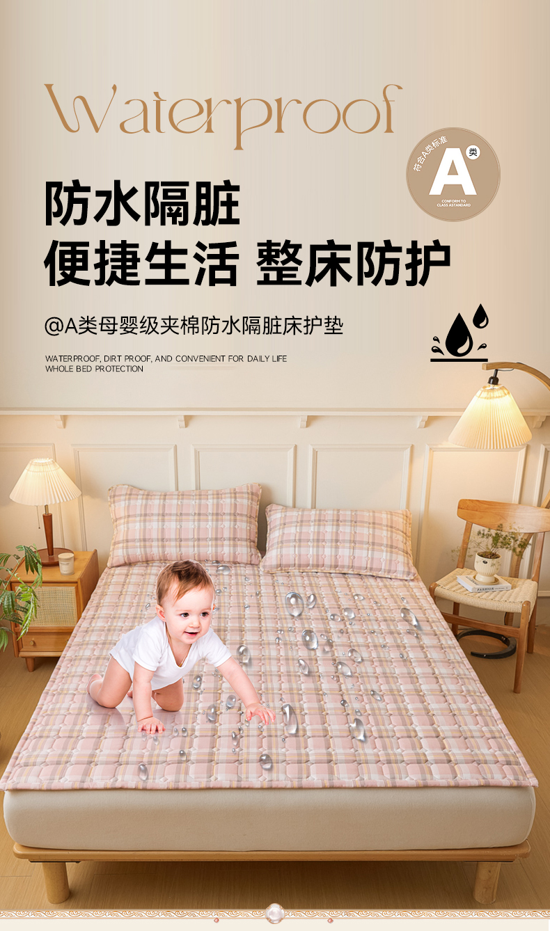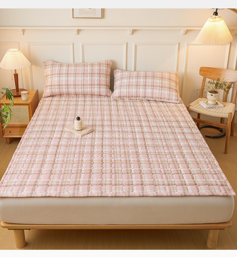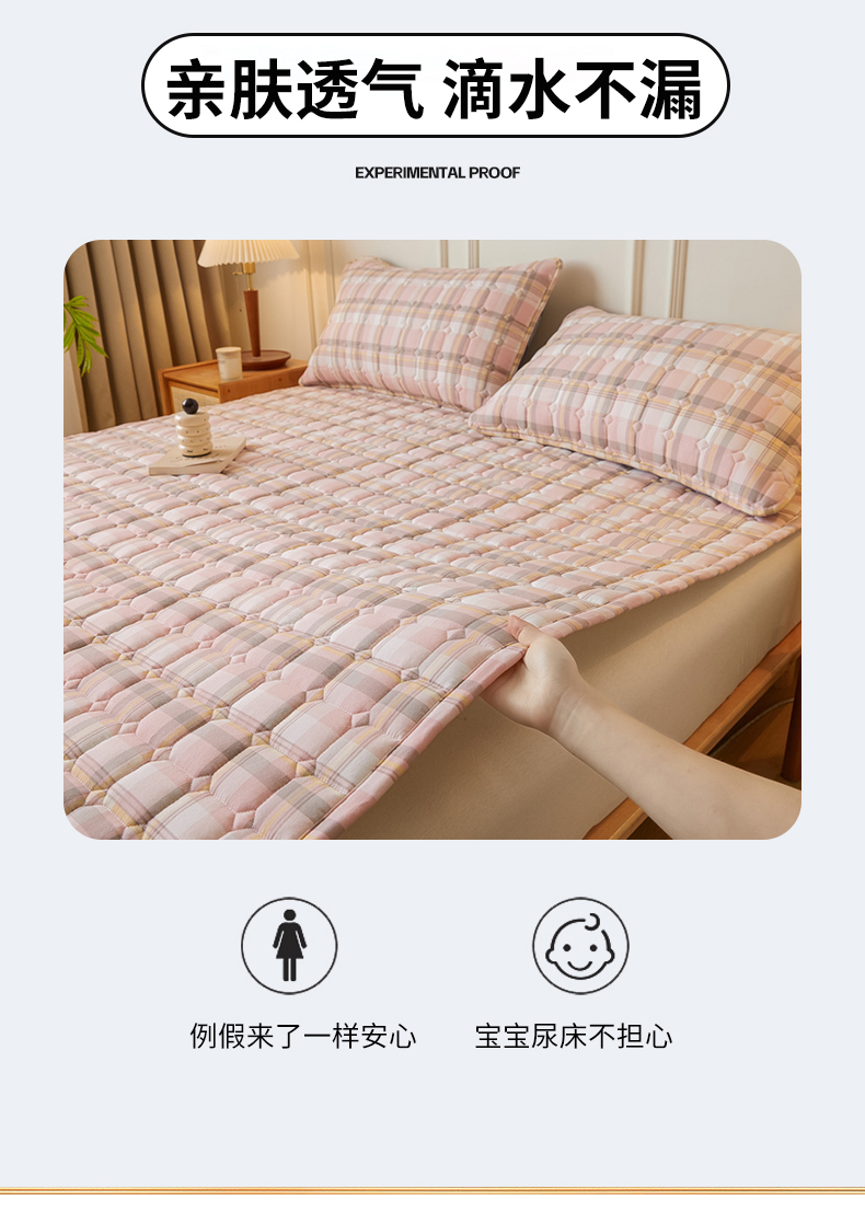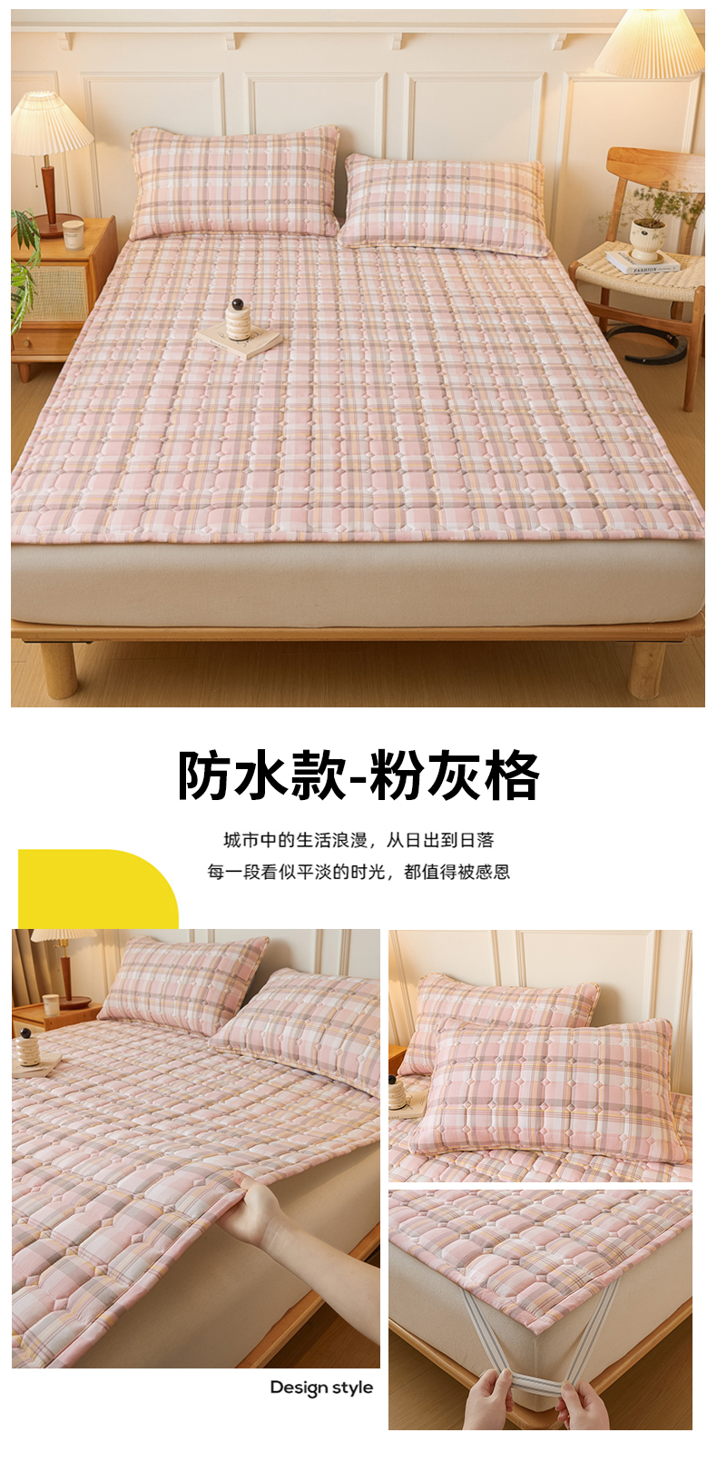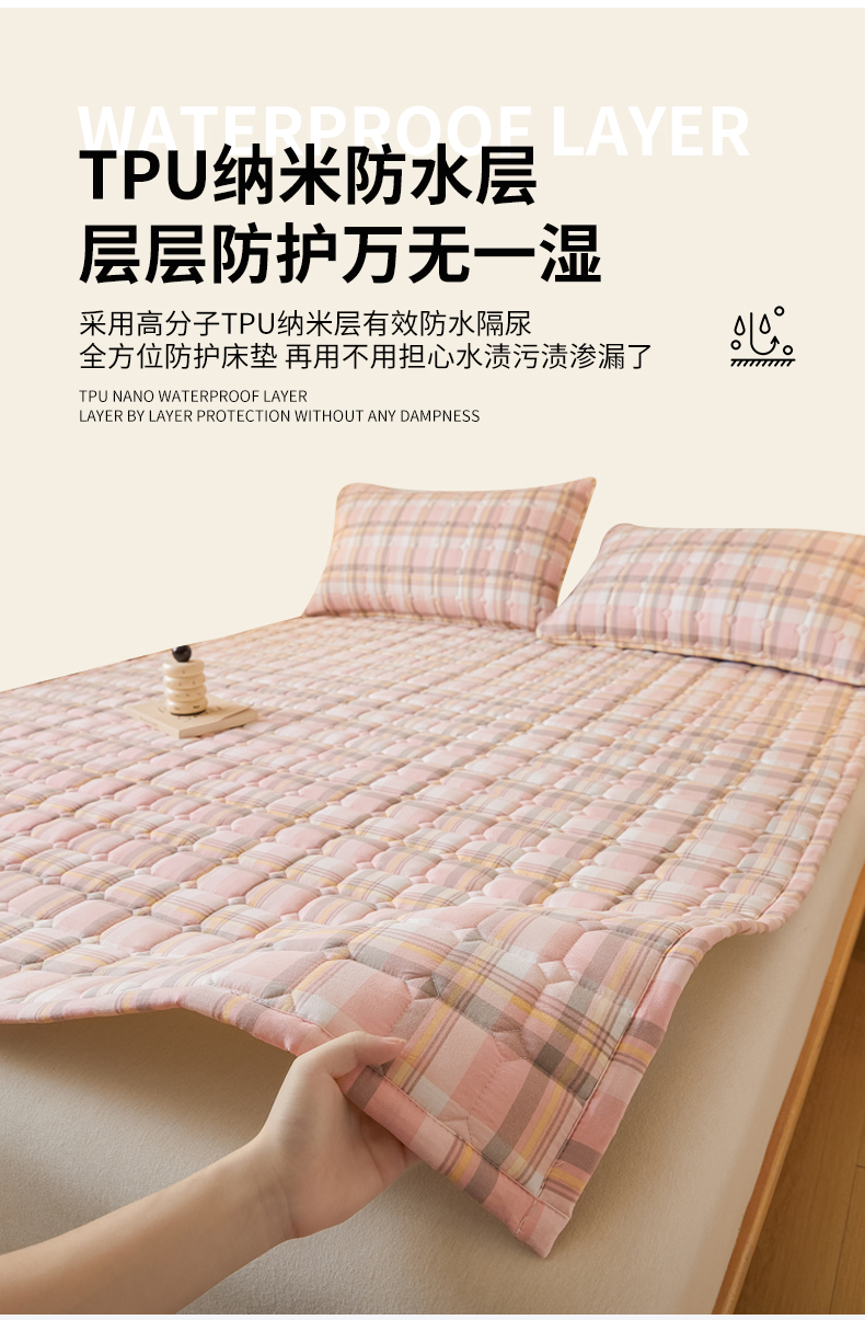 恋绒家纺 2025新款无印风水洗棉防水款床褥隔尿垫床褥护理垫床垫 粉灰格