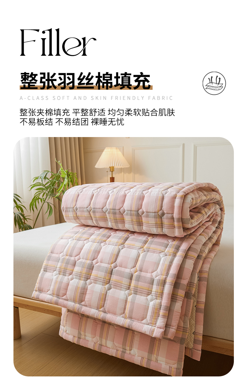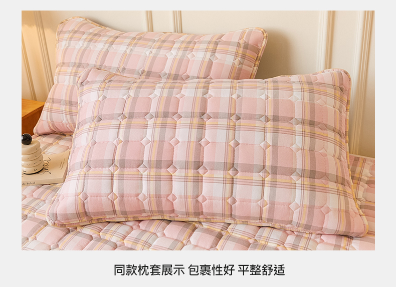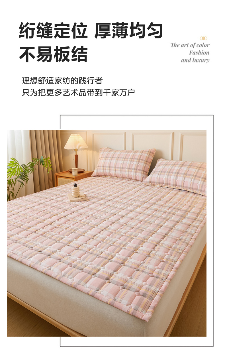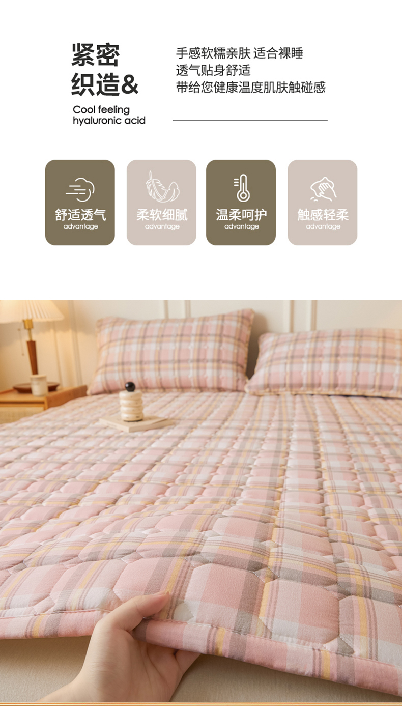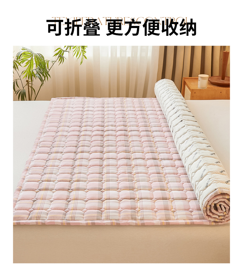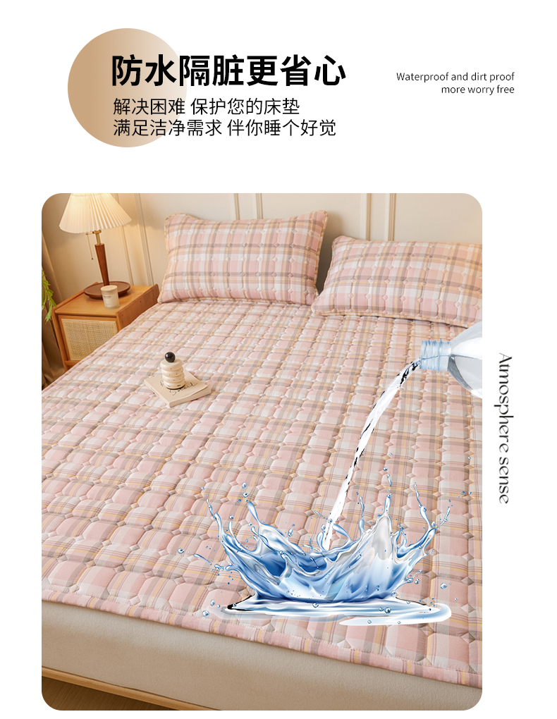 恋绒家纺 2025新款无印风水洗棉防水款床褥隔尿垫床褥护理垫床垫 粉灰格