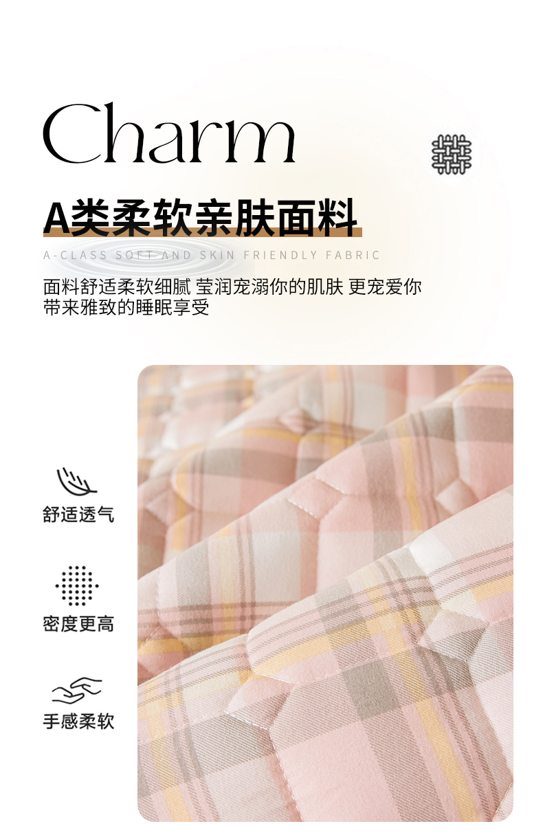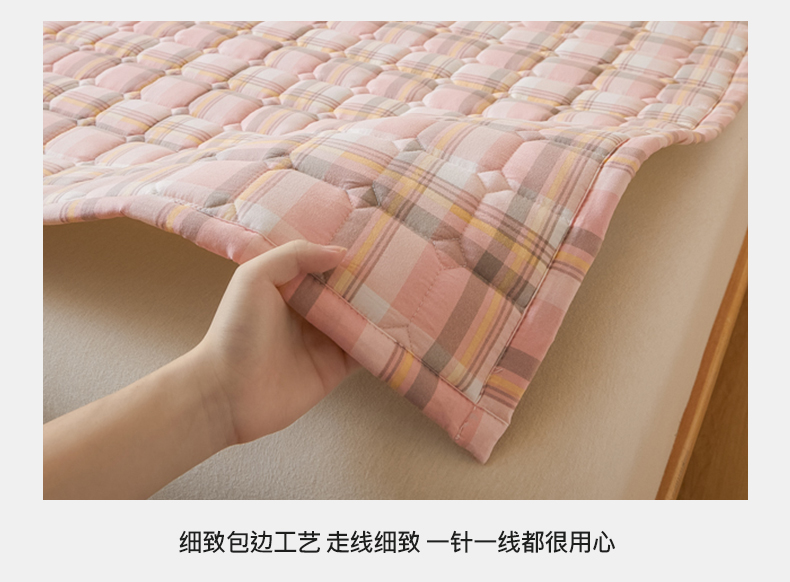 商品名称:恋绒家纺 2025新款无印风水洗棉防水款床褥隔尿垫床褥护理垫床垫 粉灰格