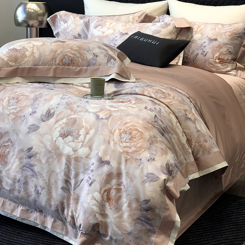 (总)太古汇家居 2025新款活性数码印花四件套,丽奥娜-松石绿,丽奥娜-杏子灰,丽奥娜-樱落紫,莉安娜-粉,莉安娜-卡其,莉安娜-绿,西莉娅-淡紫,西莉娅-粉色