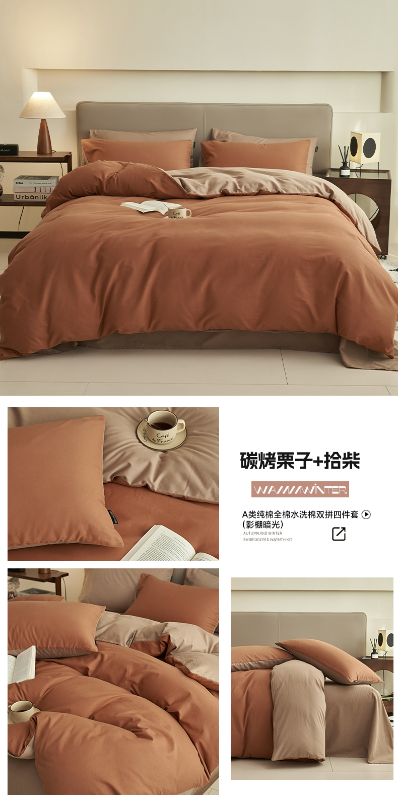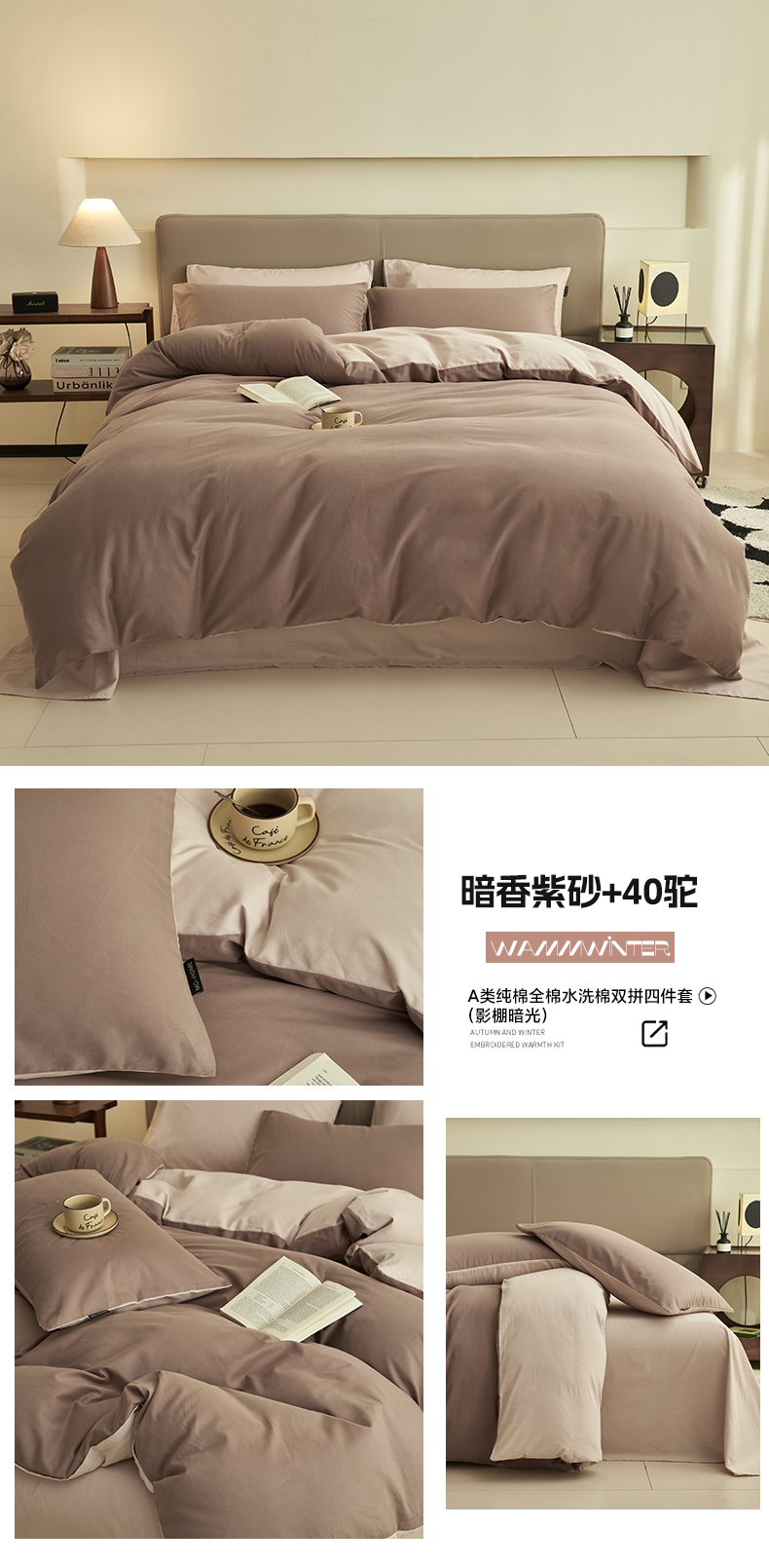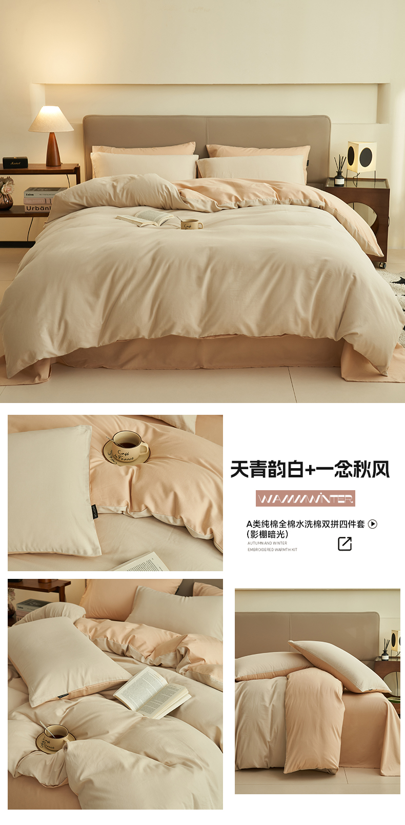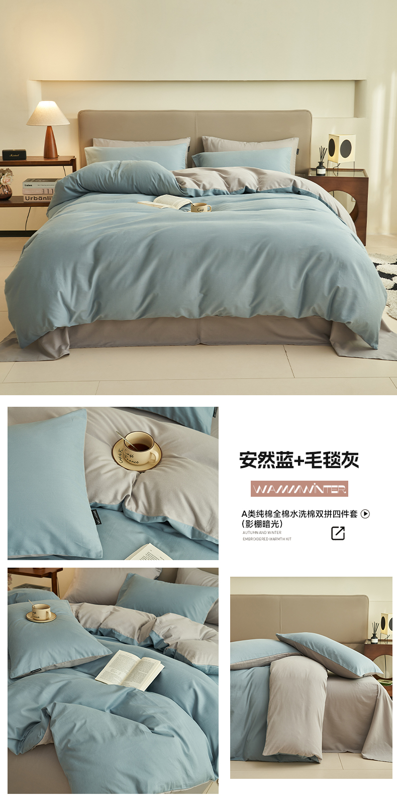 (总)2025新款全棉13372水洗棉双拼四件套(影棚暗光),天青韵白+拾柴,40暖木棕+拾柴,40驼+40暖木棕,安然蓝+毛毯灰,暗木幽香+宝藏灰,暗香紫砂+40驼,布鲁兰+拾柴,春风十里+浮生一梦,豆沙+毛毯灰,扶苏绿+毛毯灰,果绿+墨子绿,礁石灰+毛毯灰,漫雾+古巴砂,毛毯灰+宝藏灰,蘑菇黄+天青韵白,碳烤栗子+拾柴,天蓝+米黄,天青韵白+一念秋风,一叶知秋+袅袅灰,樱木粉+一念秋风