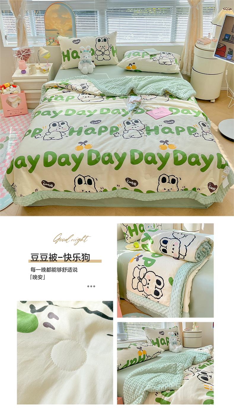 (总)一加一 2025新款全棉双层皱皱纱毛巾绣抗菌大豆被芯,快乐狗,腊肠狗,甜甜小丸子,星愿树,熊猫派对