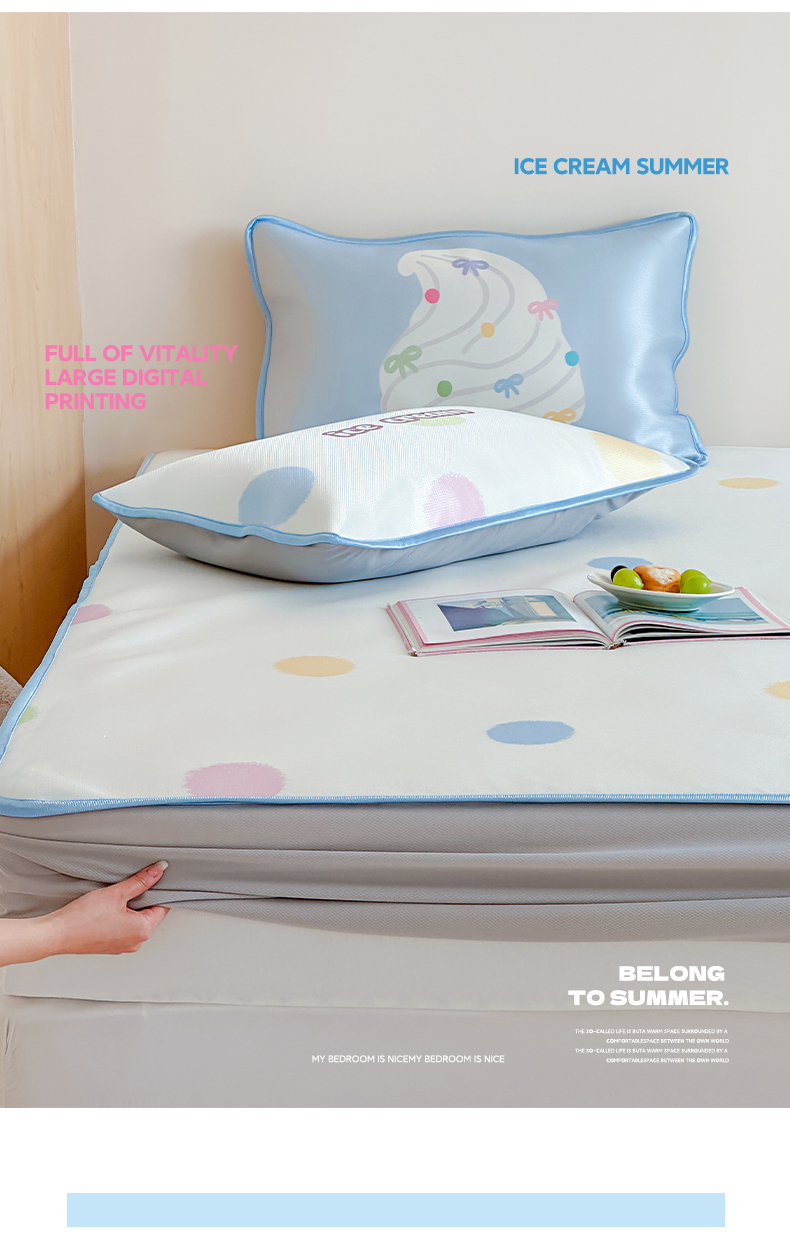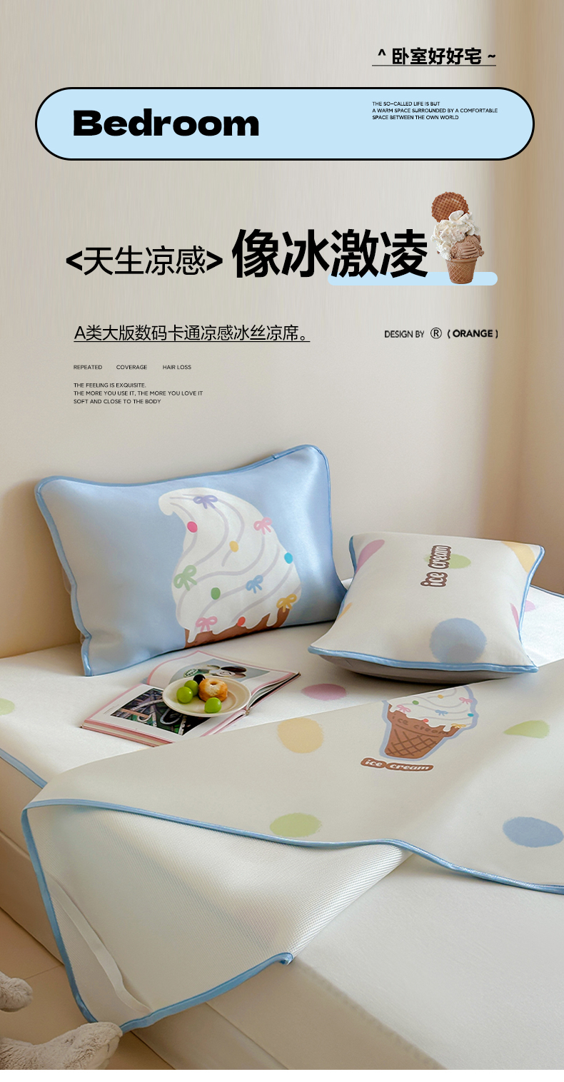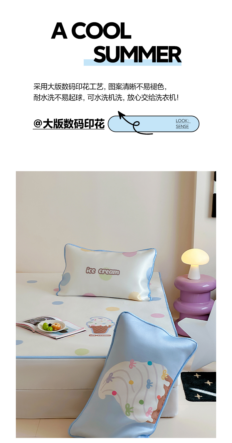 如一2025A类ins大版数码卡通印花冰丝凉感席 冰淇淋-床席