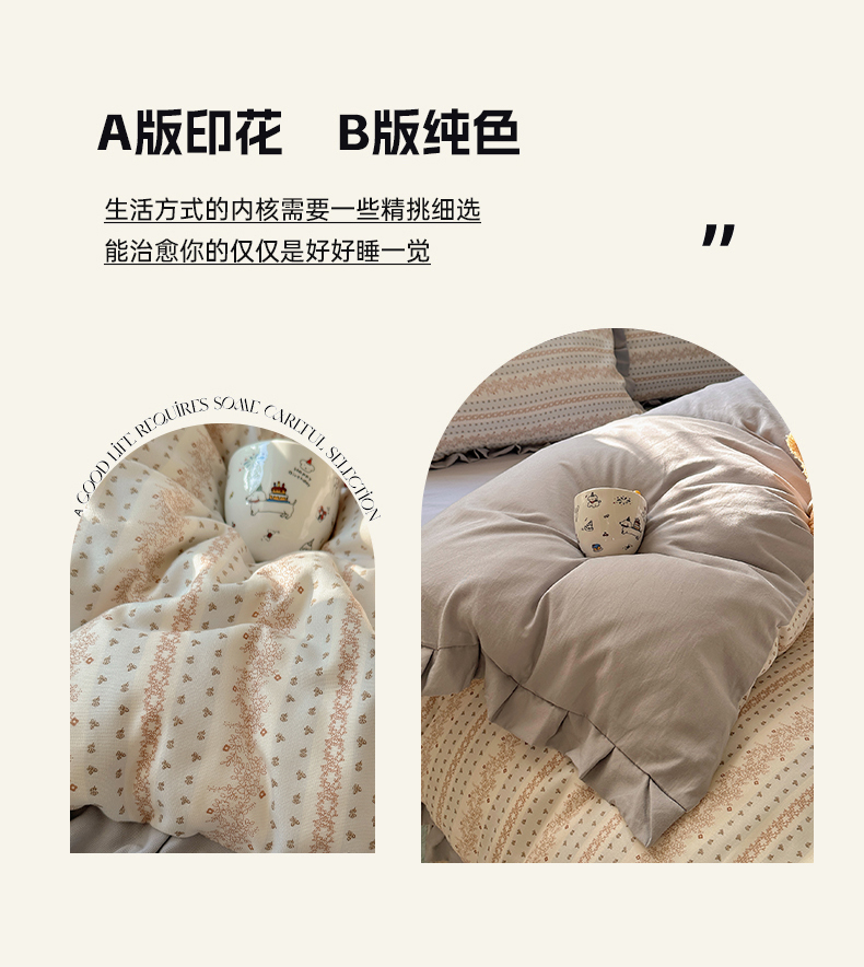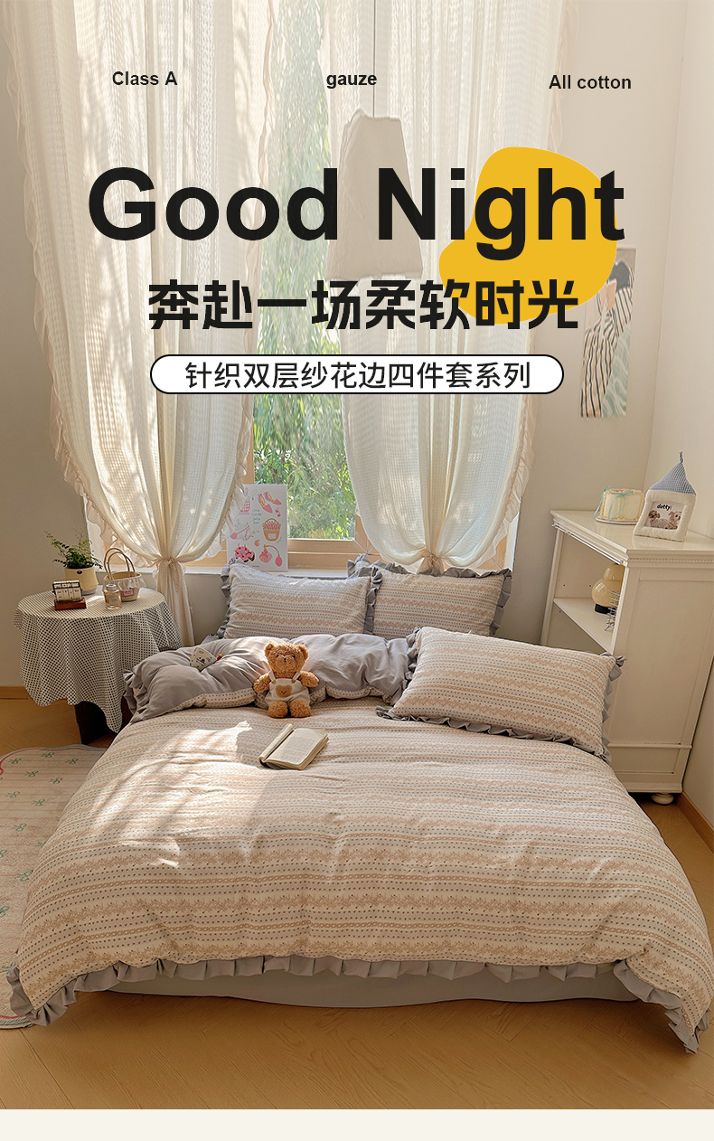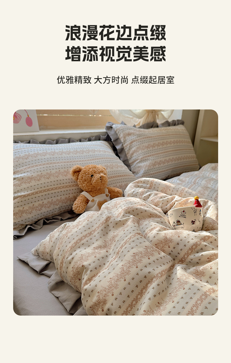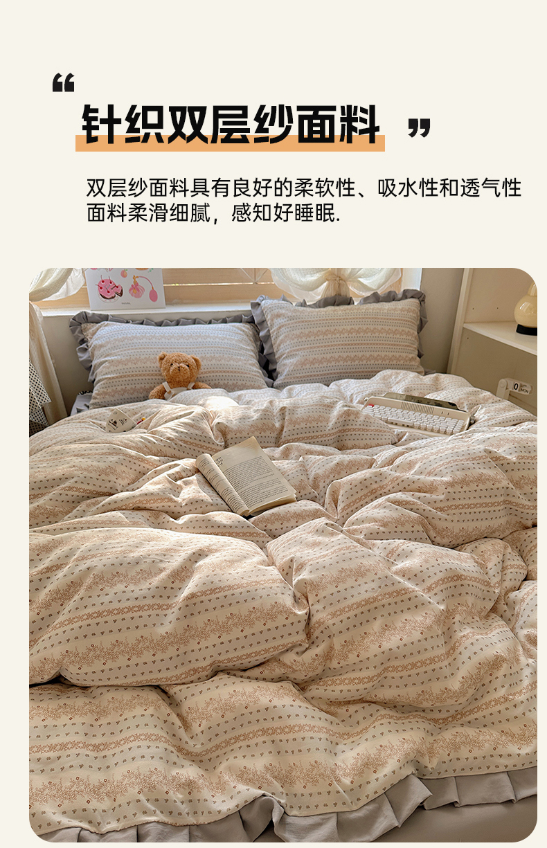 当前位置: 91家纺网 > 商品网购 > 床品套件 > 四件套 > 双层纱四件套 > 韩巢家纺 2025新款针织双层纱花边款被套直播热销款四件套学生宿舍床单三件套-(提供卖家秀) 木昔