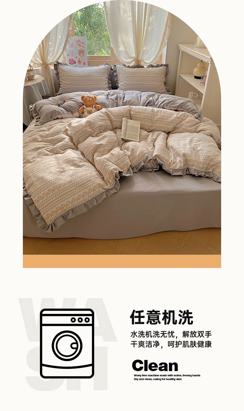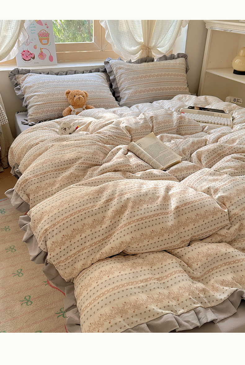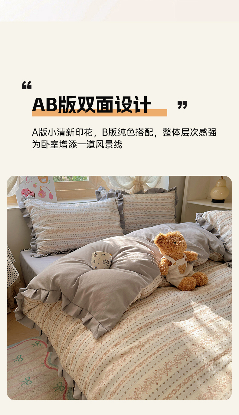 当前位置: 91家纺网 > 商品网购 > 床品套件 > 四件套 > 双层纱四件套 > 韩巢家纺 2025新款针织双层纱花边款被套直播热销款四件套学生宿舍床单三件套-(提供卖家秀) 木昔