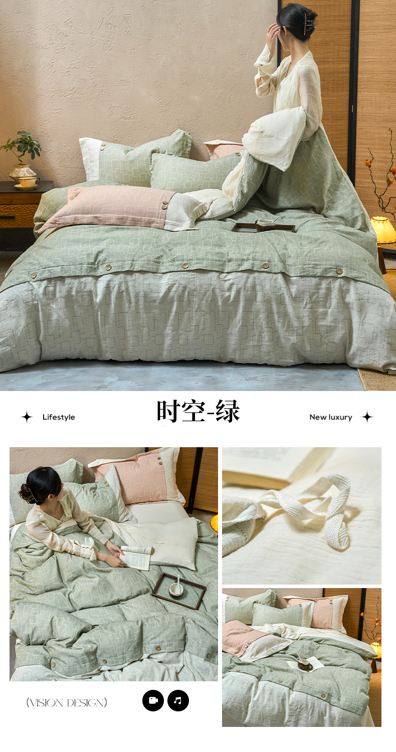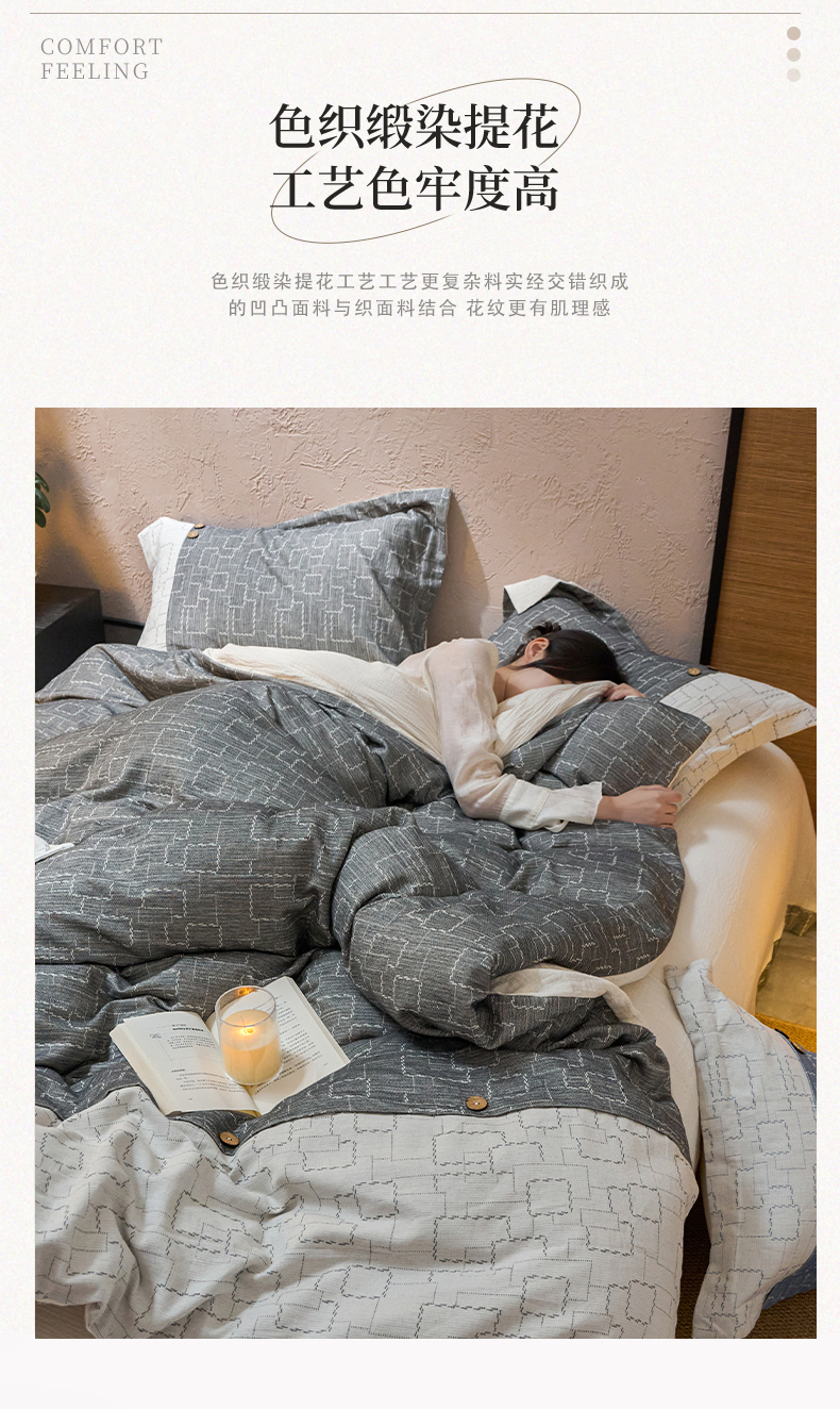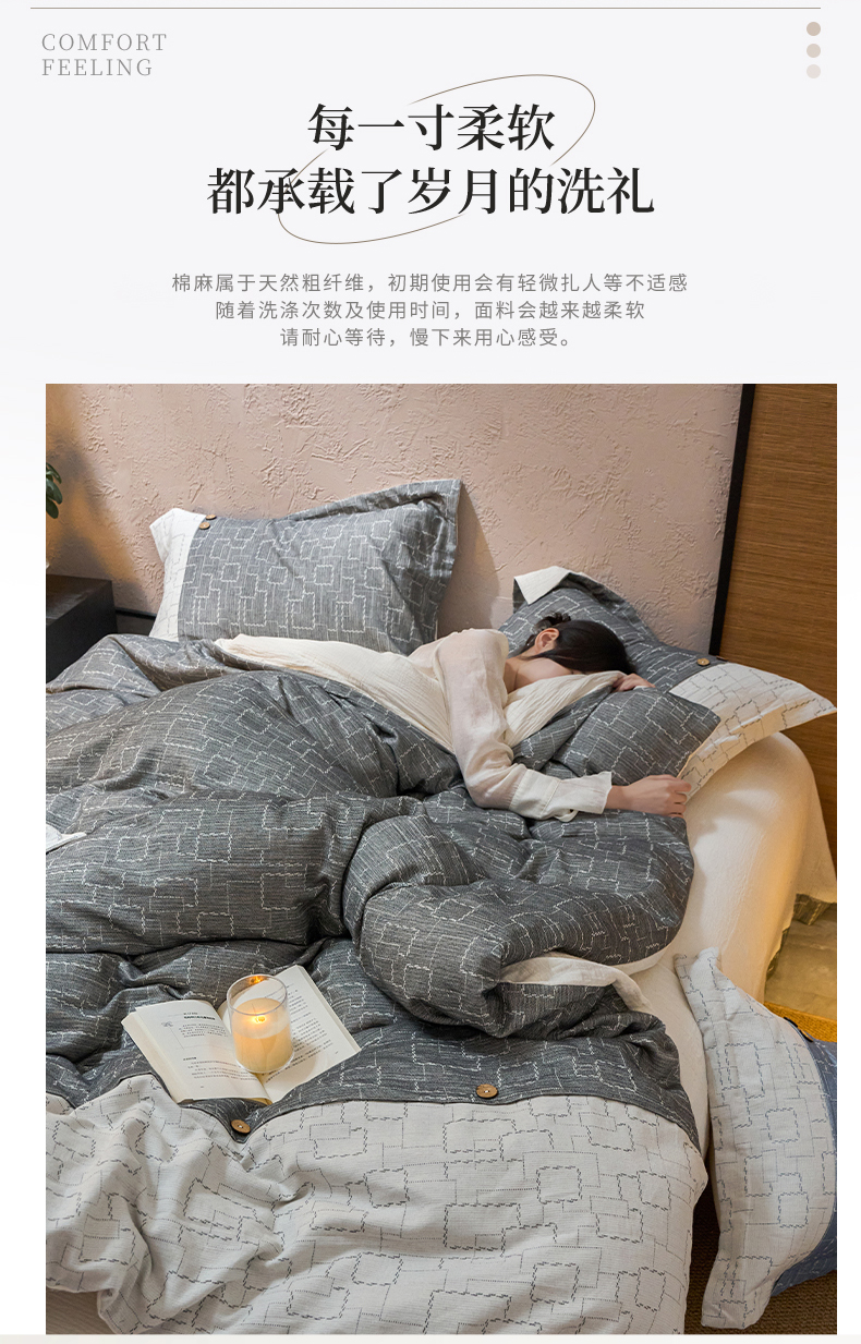 春皖家纺 2025新款棉麻大提花文艺风四件套 时空-黑