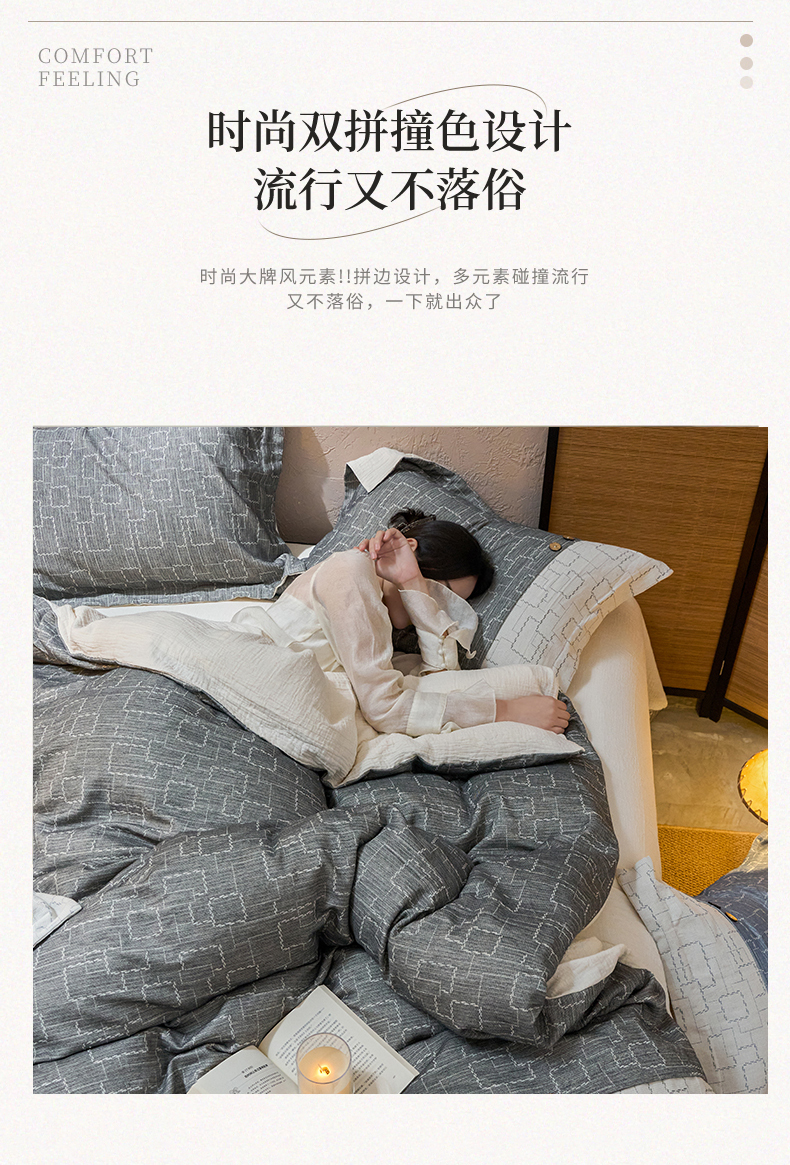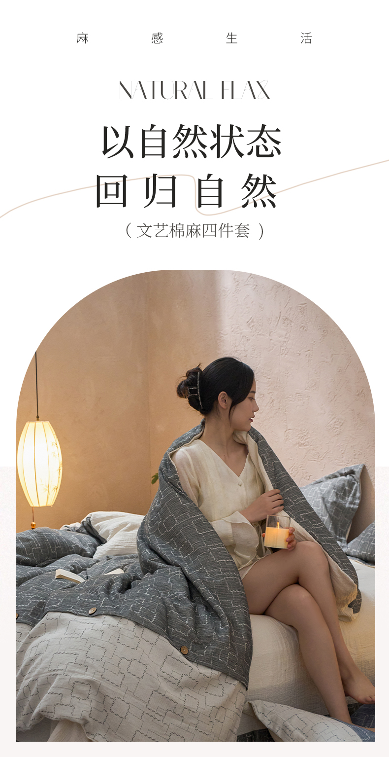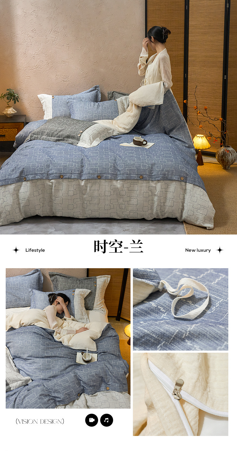春皖家纺 2025新款棉麻大提花文艺风四件套 时空-黑