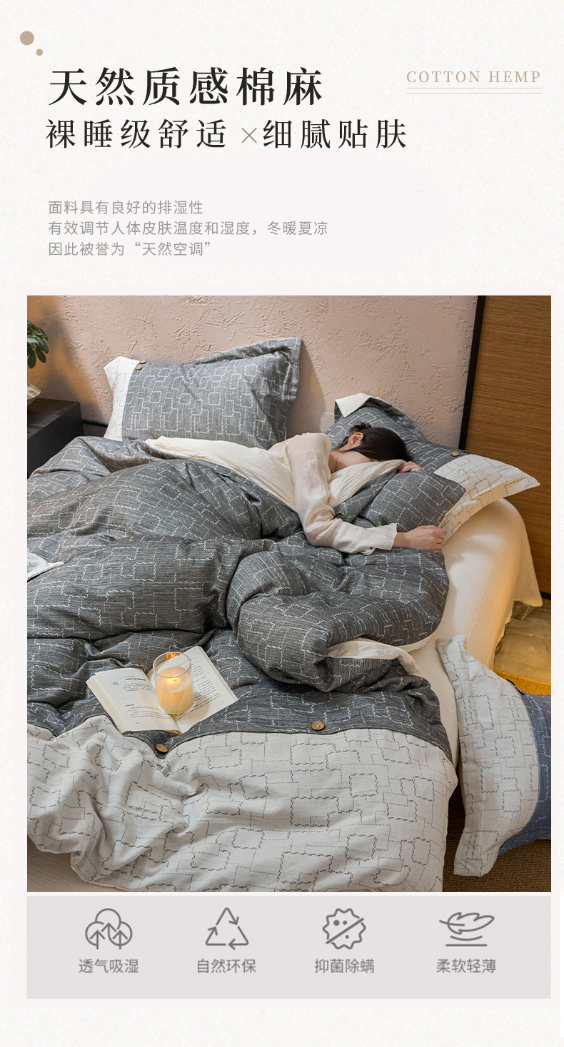 商品名称:春皖家纺 2025新款棉麻大提花文艺风四件套 时空-黑