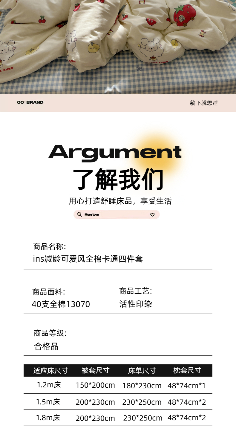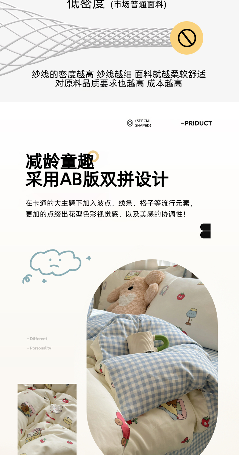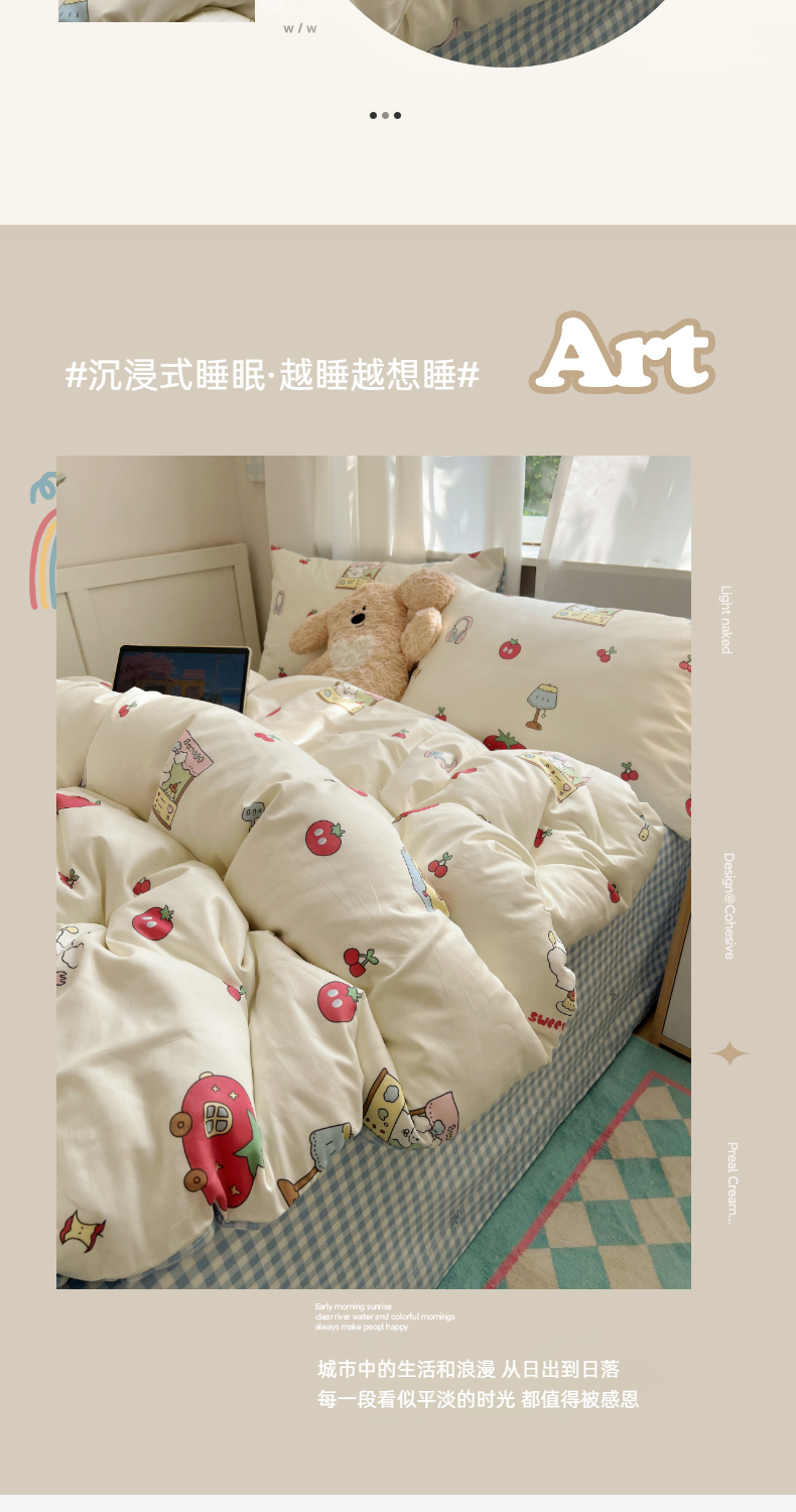 (总)六巷胡同 2025新款INS卡通童趣混搭风全棉四件套第二系,混搭-蛋糕围兜熊,混搭-奶油酣睡熊,混搭-奈斯羞羞狗,混搭-小蓝格甜点,混搭-雪糕哈皮熊,混搭-月亮睡睡熊
