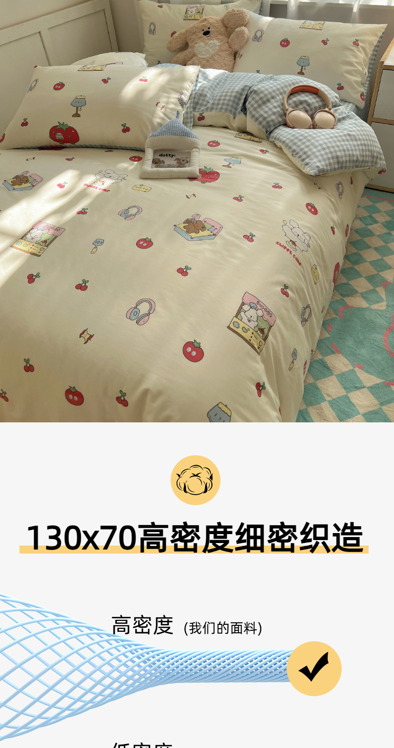 (总)六巷胡同 2026新款韩系博主风60支色织提花小樱桃A类全棉水洗棉四件套,小樱桃-粉,小樱桃-黄,小樱桃-蓝,小樱桃-绿
