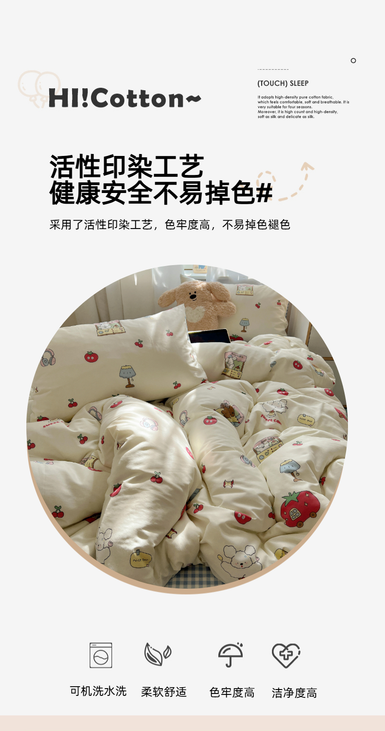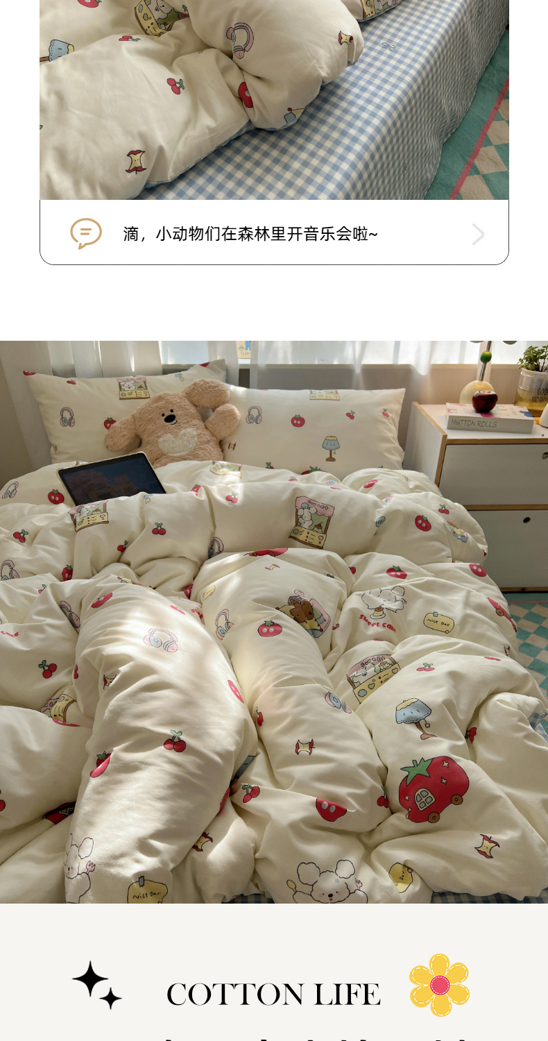 (总)六巷胡同 2025新款INS童趣可爱风卡通全棉四件套-第四系,彩虹甜筒猫,草莓害羞喵,粉格元气猫,咖格樱桃狗,蓝格嗨皮狗,圣诞麋鹿狗,仙人掌粉象,熊熊猫咪崽