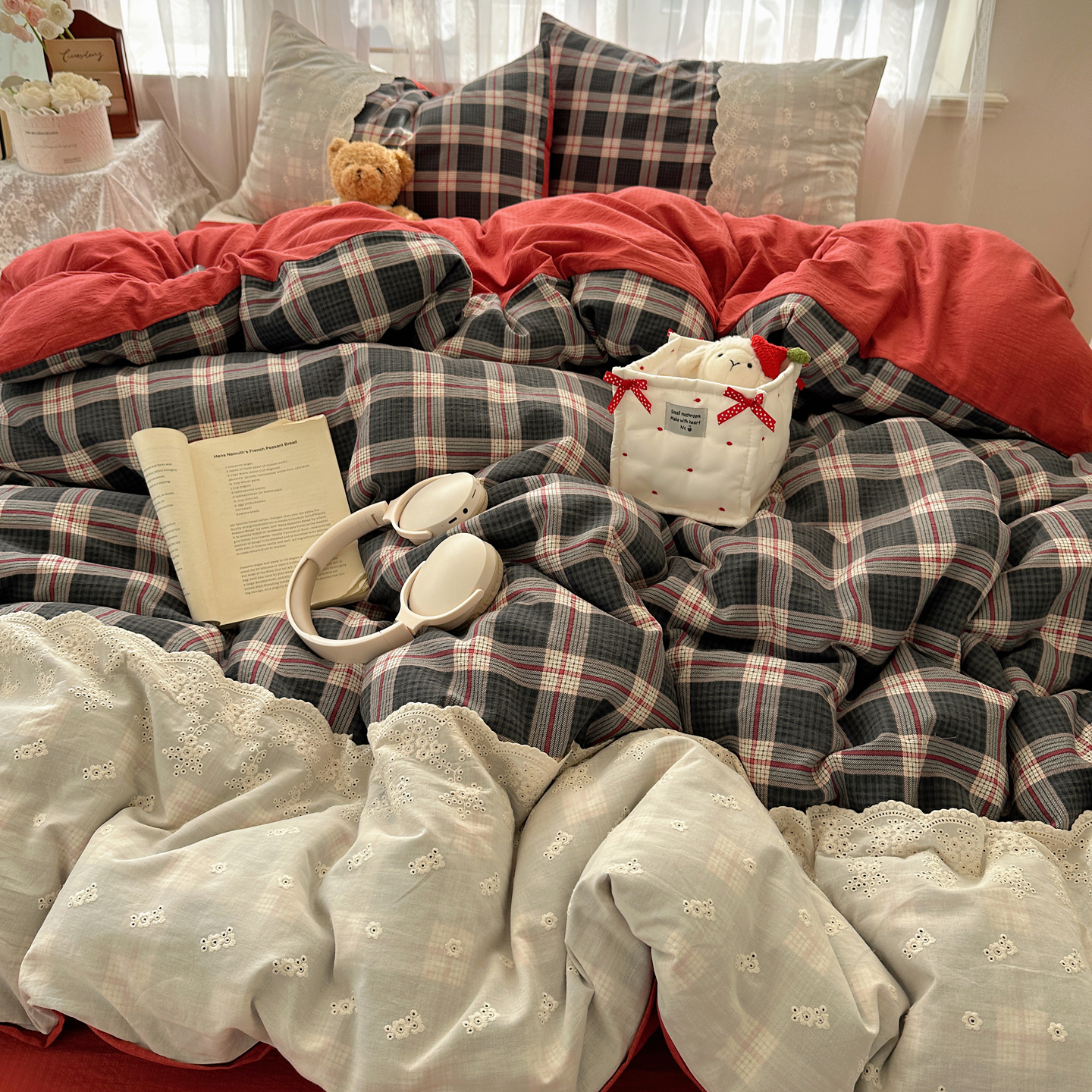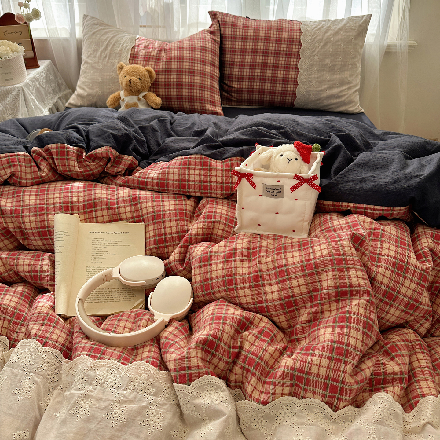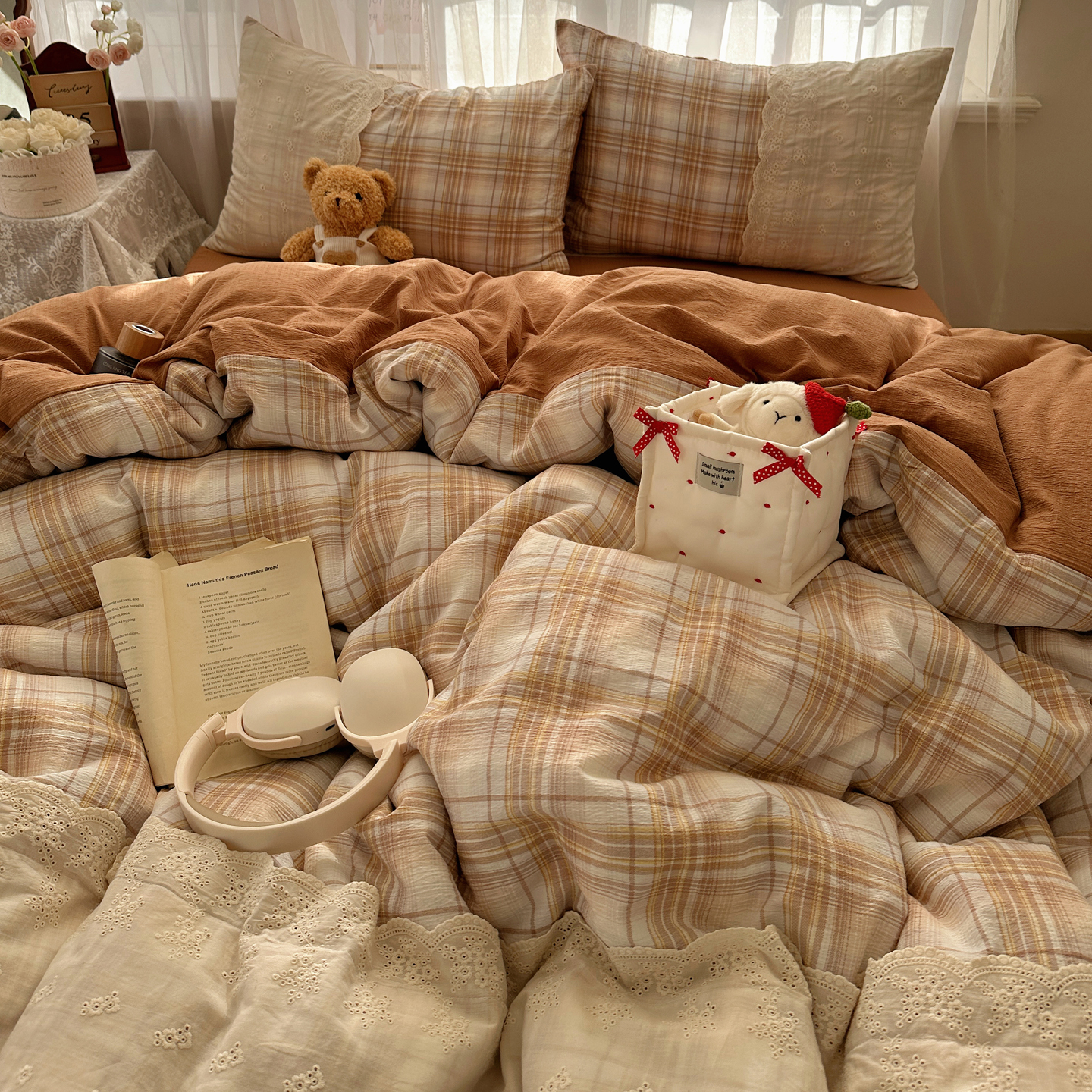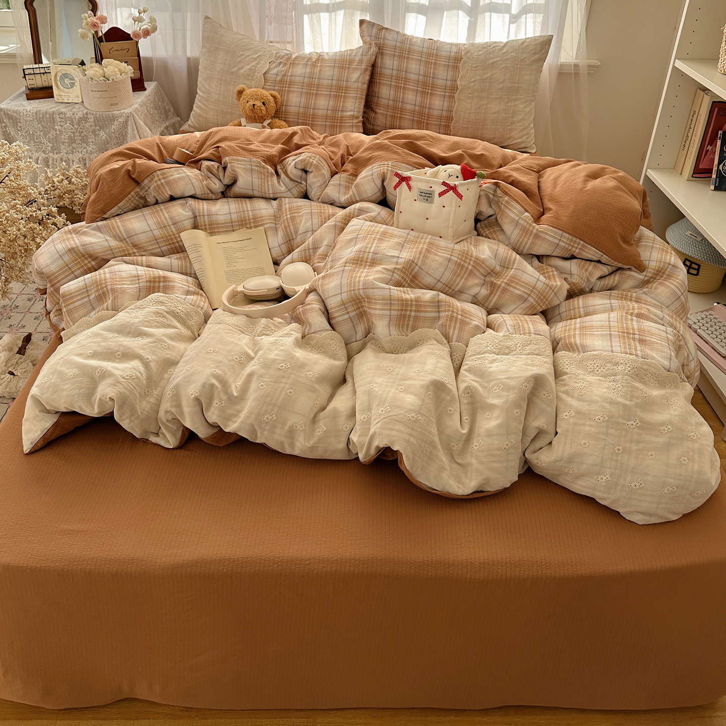 当前位置: 91家纺网 > 商品网购 > 床品套件 > 四件套 > 其它四件套 > 顾里家纺 2025新款韩系ins复古蕾丝格纹套件四件套 星河漫野