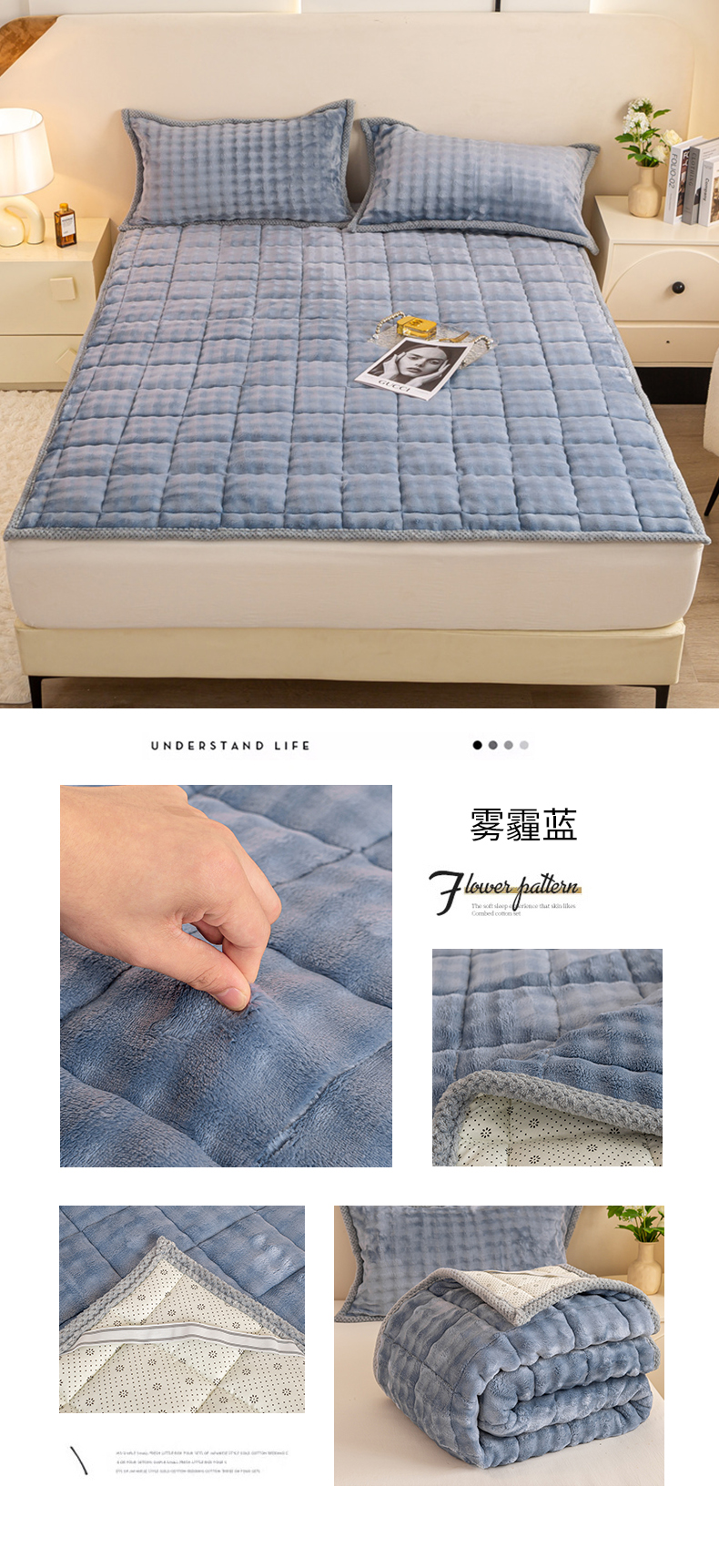 (总)正邦家纺 2025新款加厚全消光牛奶绒床垫夹棉床褥高克重5D雕花牛奶绒单人床上下铺床护垫,苹果绿,青花蓝,沙茶色,月蓝,柔雾灰,桃夭,组合