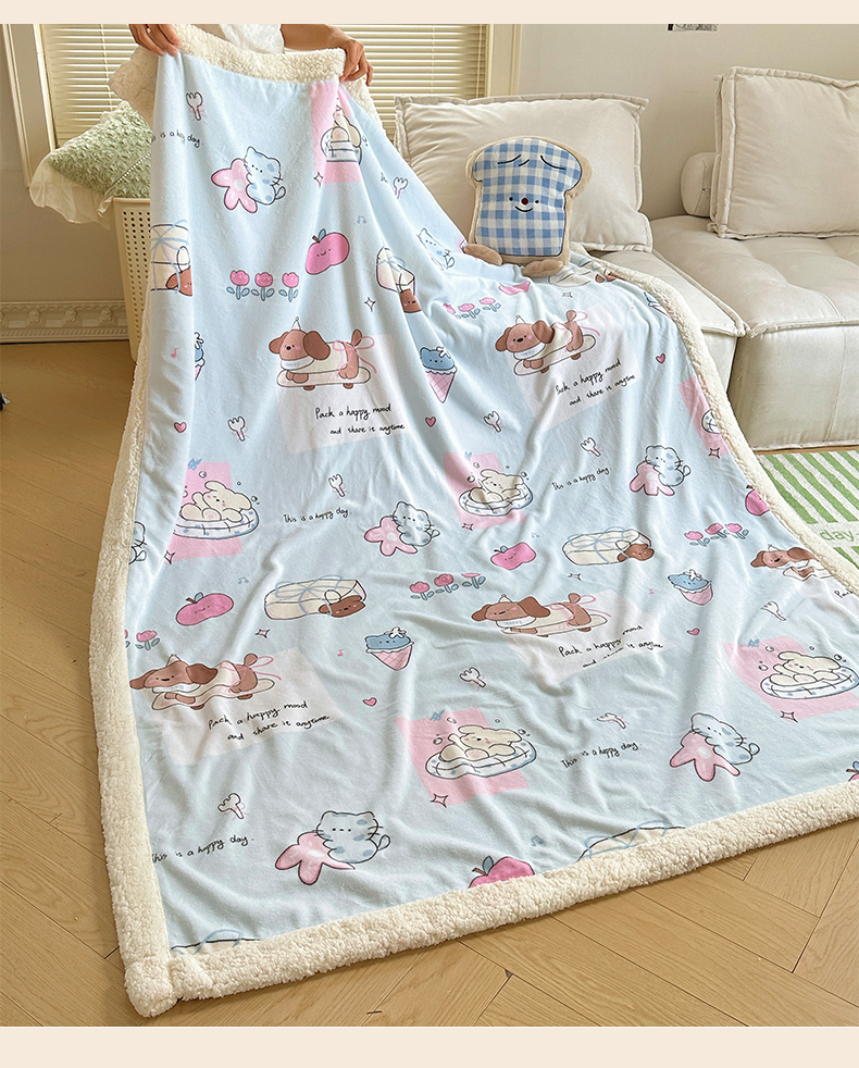 六巷胡同 2025新款INS卡通A类牛奶绒羊羔绒毛毯毯子 磁带熊仔粉