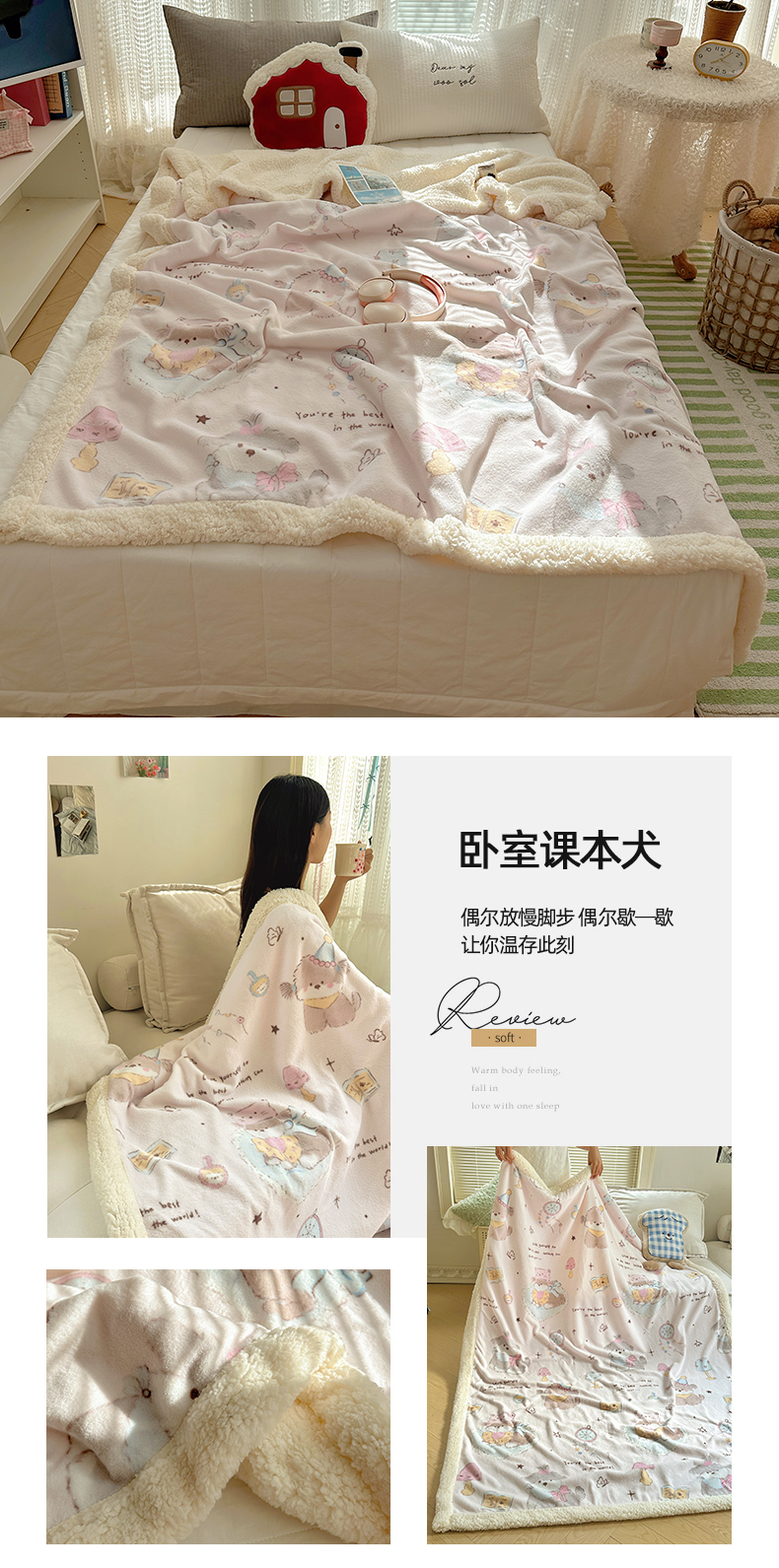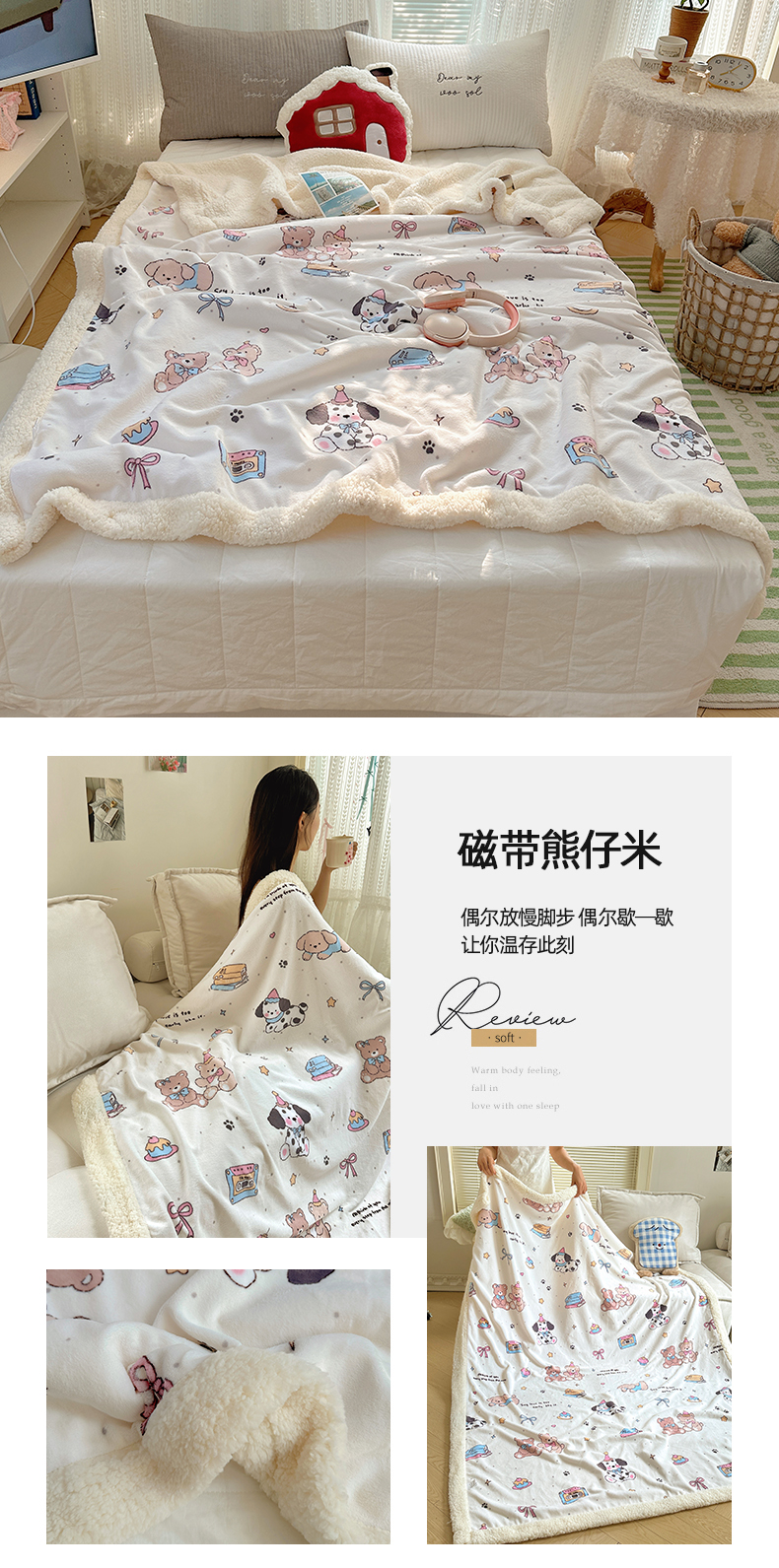 商品名称:六巷胡同 2025新款INS卡通A类牛奶绒羊羔绒毛毯毯子 磁带熊仔粉