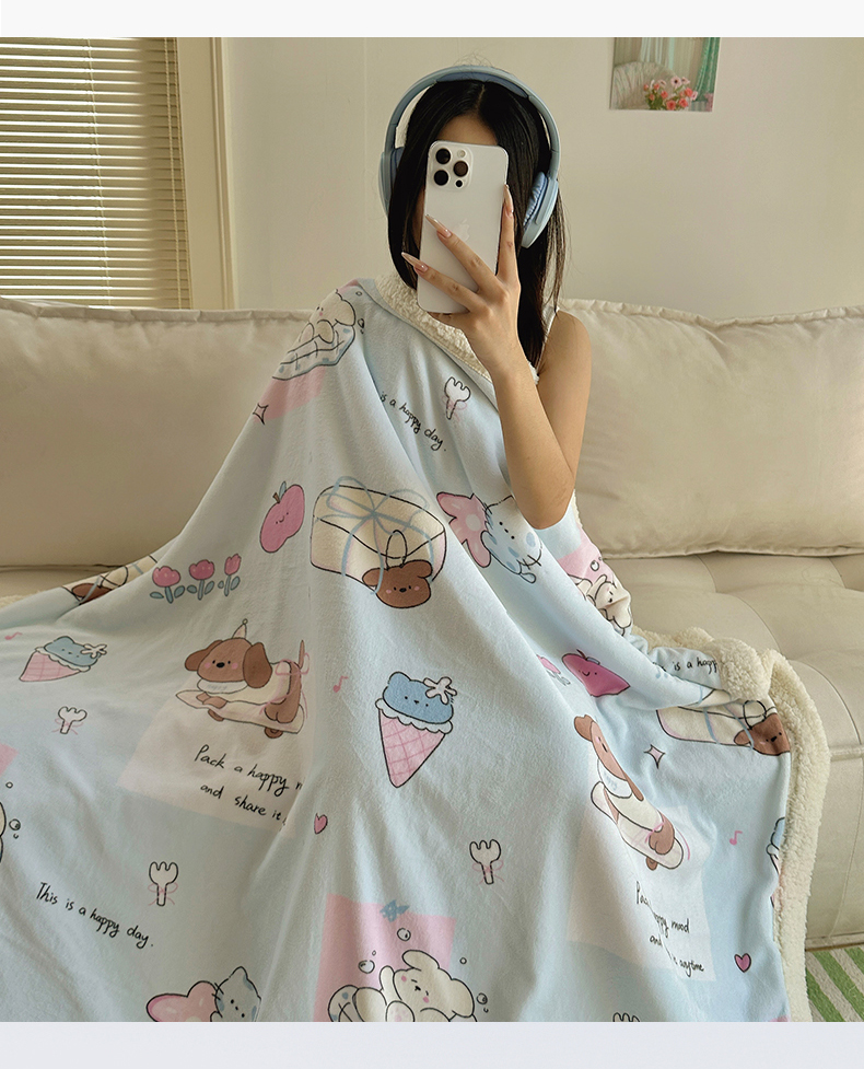 六巷胡同 2025新款INS卡通A类牛奶绒羊羔绒毛毯毯子 猫狗小课堂