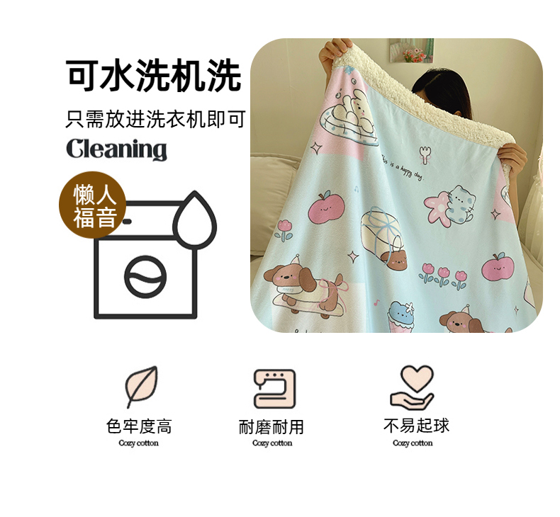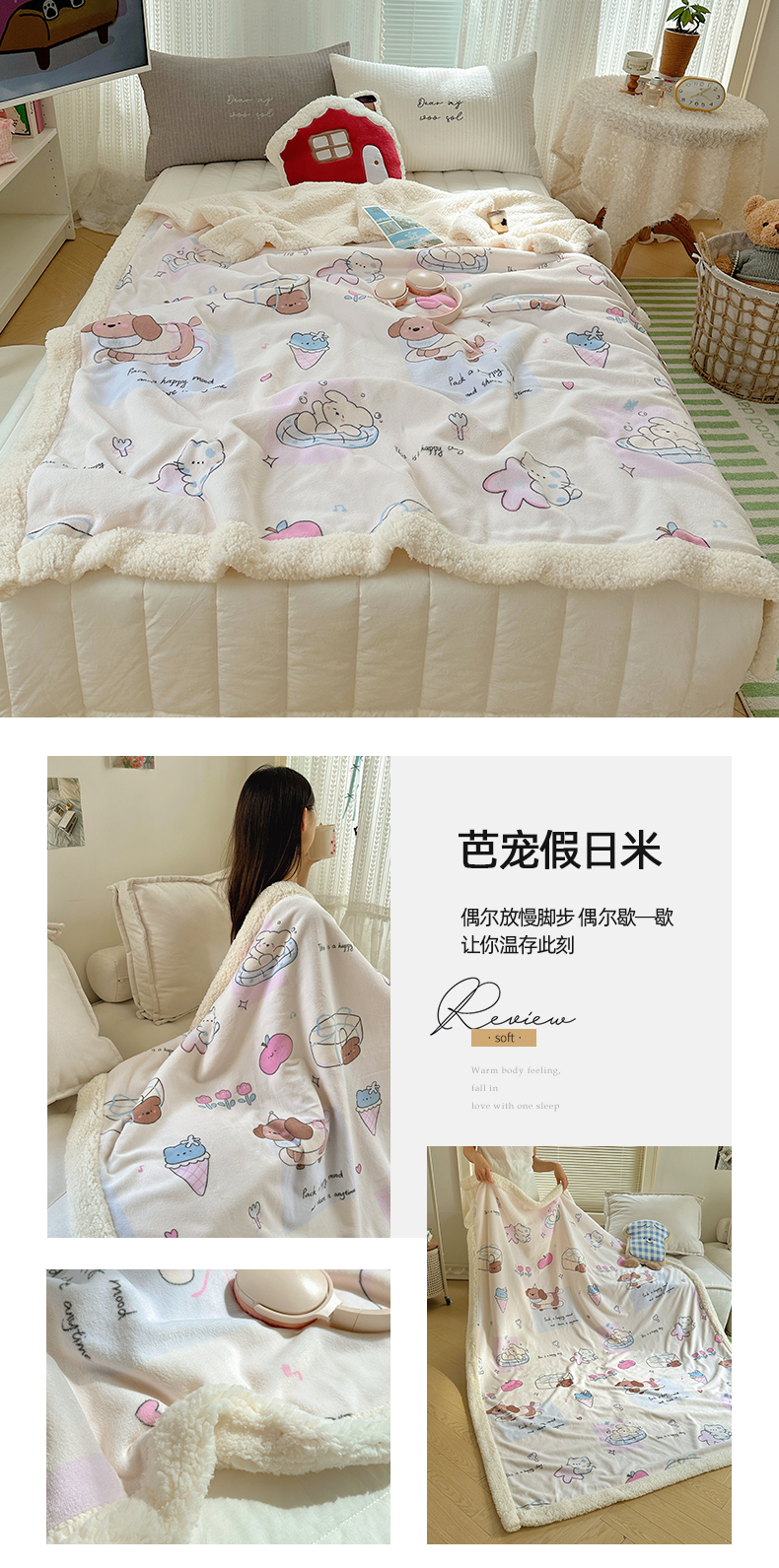 商品名称:六巷胡同 2025新款INS卡通A类牛奶绒羊羔绒毛毯毯子 猫狗小课堂