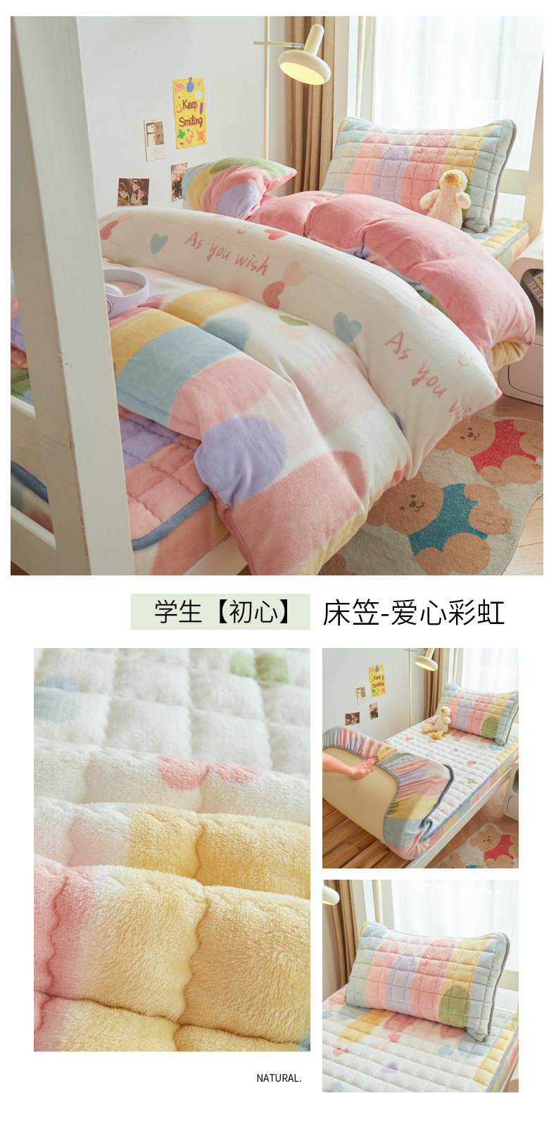 (总)爱思凯家纺 2025新款【学生】牛奶绒加棉床笠,床笠-爱心彩虹,床笠-爱心棋盘格,床笠-暗粉,床笠-北欧兰,床笠-多米熊,床笠-航海日记,床笠-嘿姆喵,床笠-灰底卡拉,床笠-看熊猫,床笠-蓝灰,床笠-美好时光,床笠-奶萌心,床笠-时尚灰,床笠-网格兔,床笠-香槟色,床笠-香草绿,床笠-小蓝熊