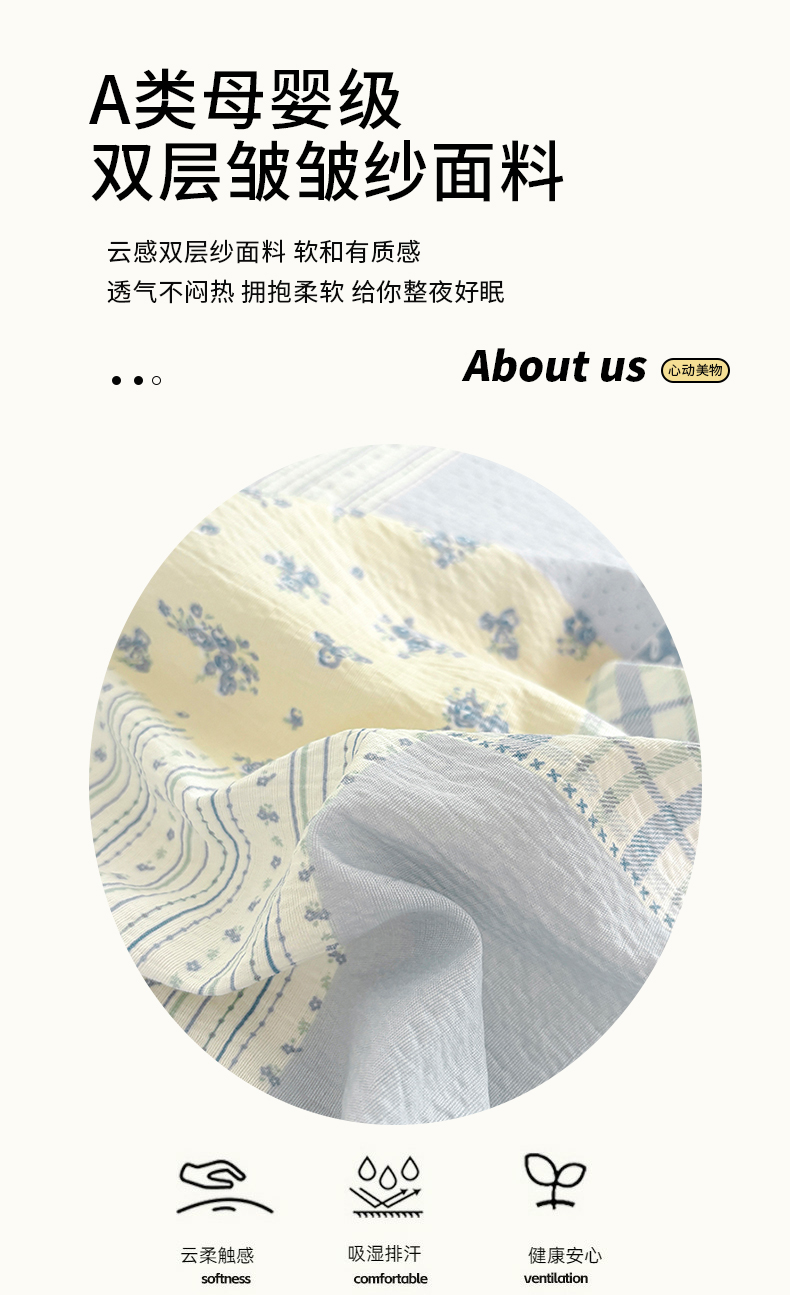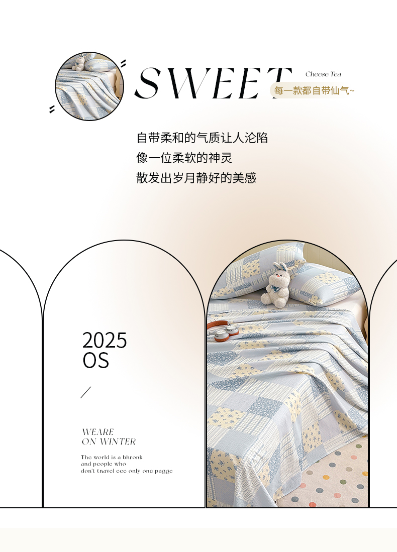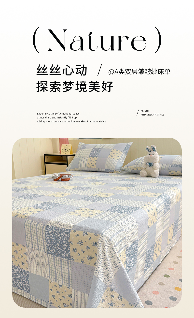 (总)青泽家纺 2025新款水洗棉皱皱纱双层纱床单三件套,芝士奶酪,半亩花田,田园女孩,疏影之心,南瓜派对,萌兔兔,萌宠乐园,梨花落,花园小兔,花间序语,海盐耶耶,乖乖象,格子小狗,豆蔻年华,花轻舞,半岛红茶