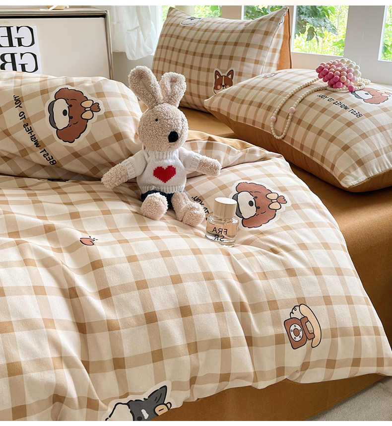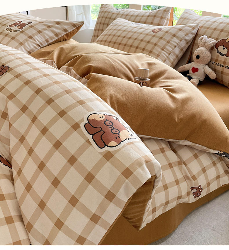 商品名称:本制 2025秋冬新款全棉混纺磨毛印花四件套 憨睡-陶土色