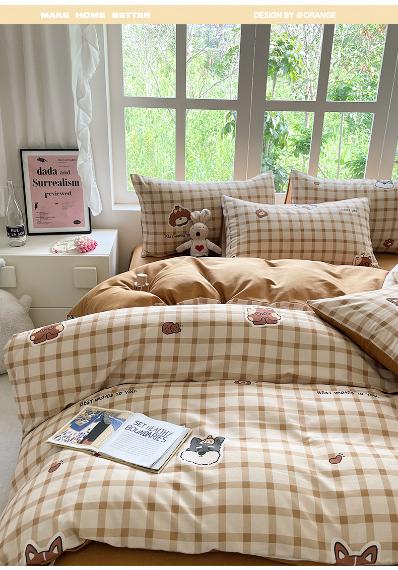 本制 2025秋冬新款全棉混纺磨毛印花四件套 憨睡-陶土色