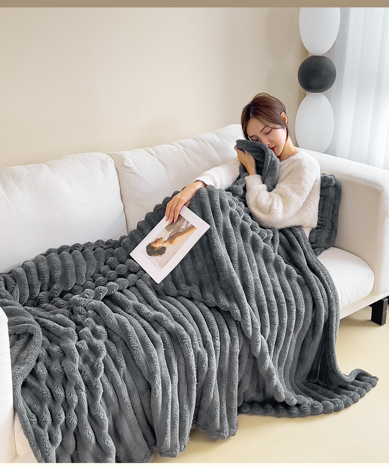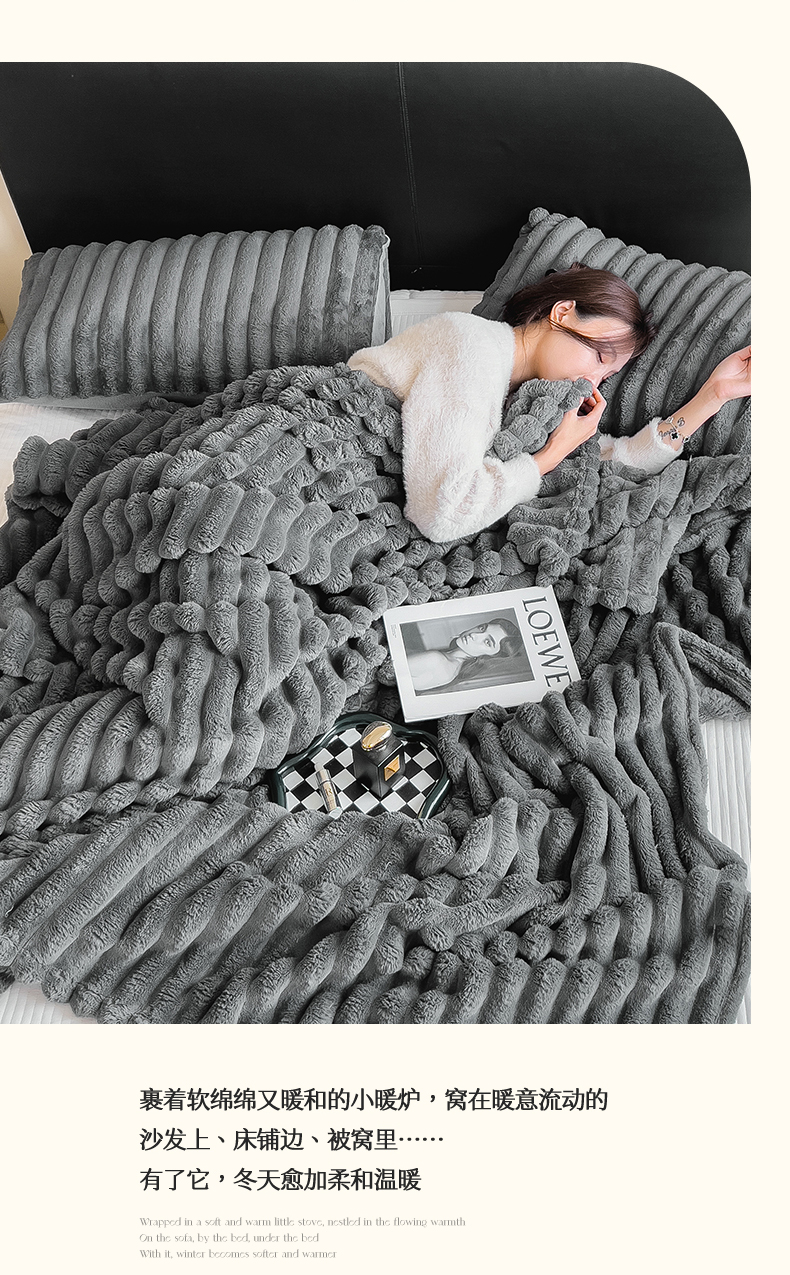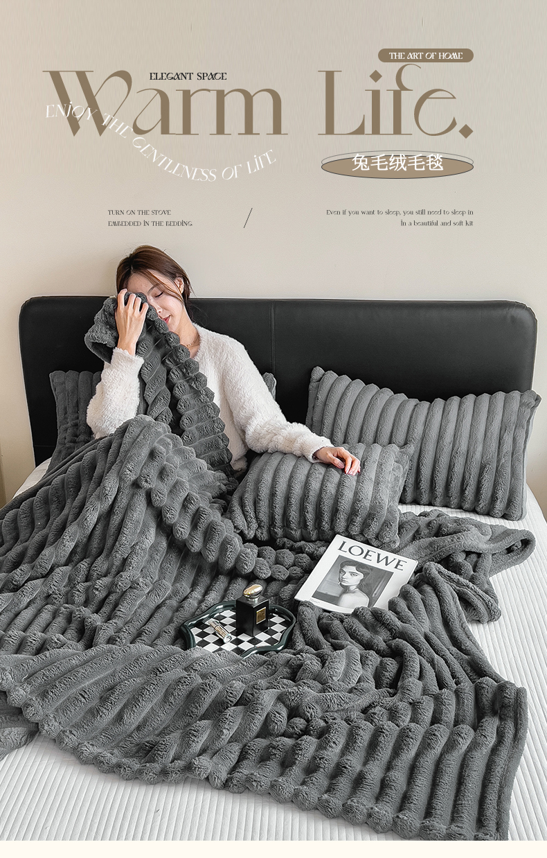 商品名称:亚龙工厂店 2025新款时尚活性抗静电兔绒毛毯毯子 兔毛深灰