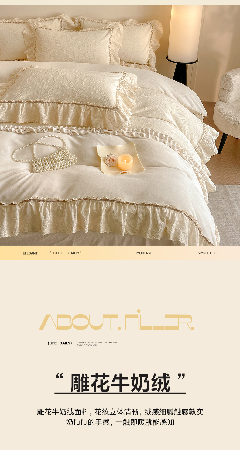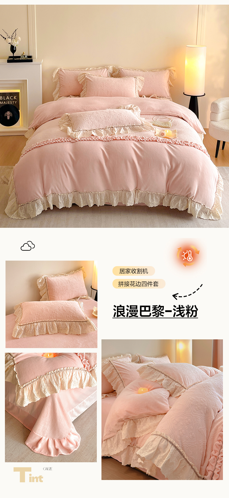 当前位置: 91家纺网 > 商品网购 > 床品套件 > 四件套 > 牛奶绒四件套 > 沐辰 2025新款雕花牛奶绒拼接花边四件套-浪漫巴黎 浪漫巴黎-米白