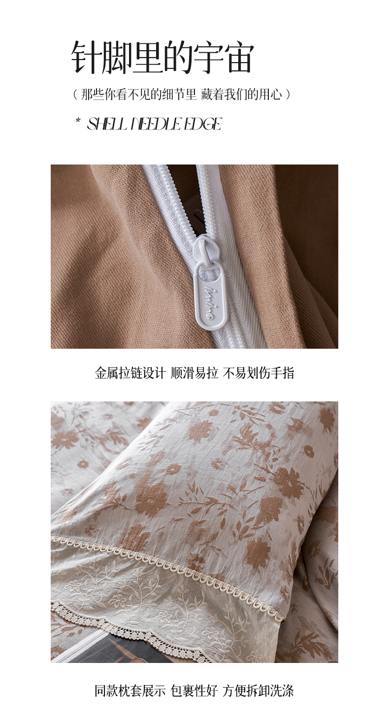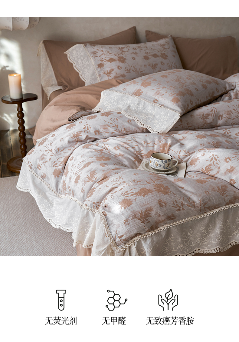 商品名称:涵宸家纺 2025新款A类全棉磨毛色织提花花边四件套 云壑深