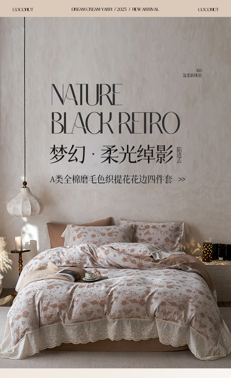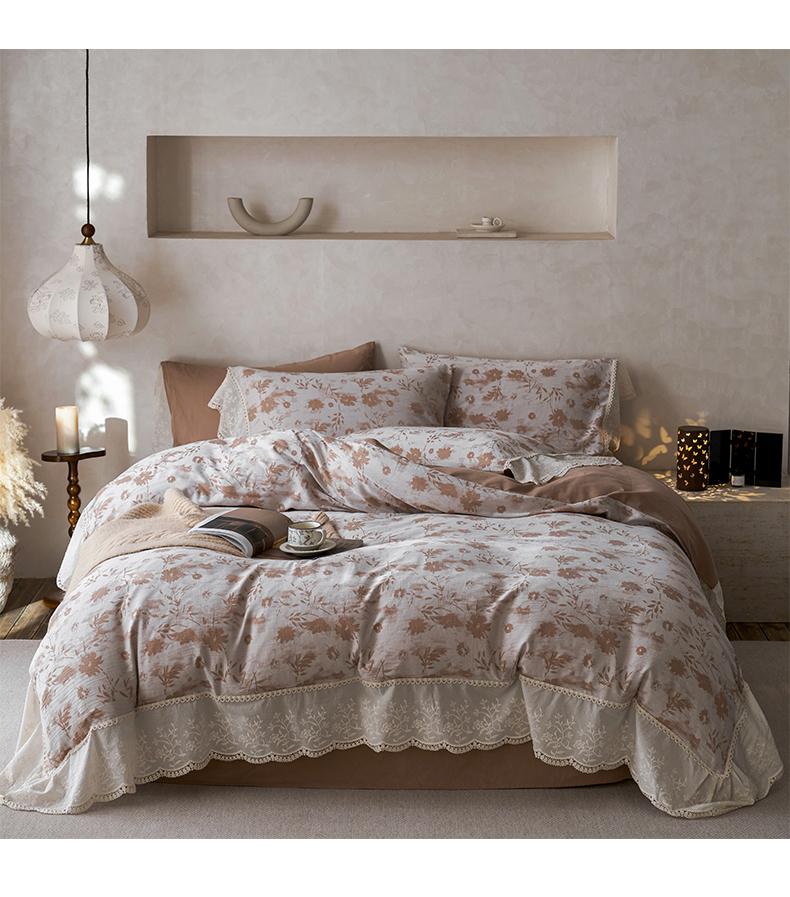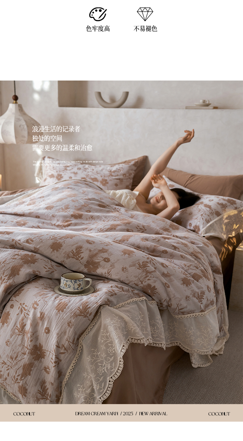涵宸家纺 2025新款A类全棉磨毛色织提花花边四件套 云壑深