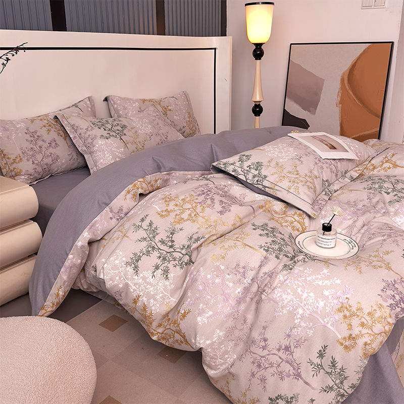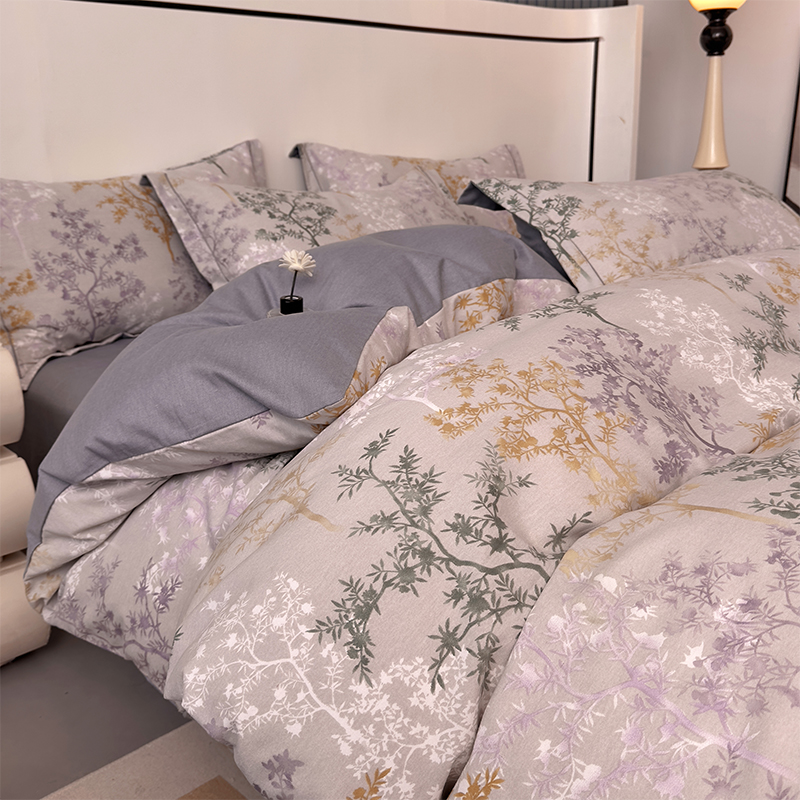 优品阁 2024新款全棉磨毛四件套单品系列-单被套 暗木幽香-灰