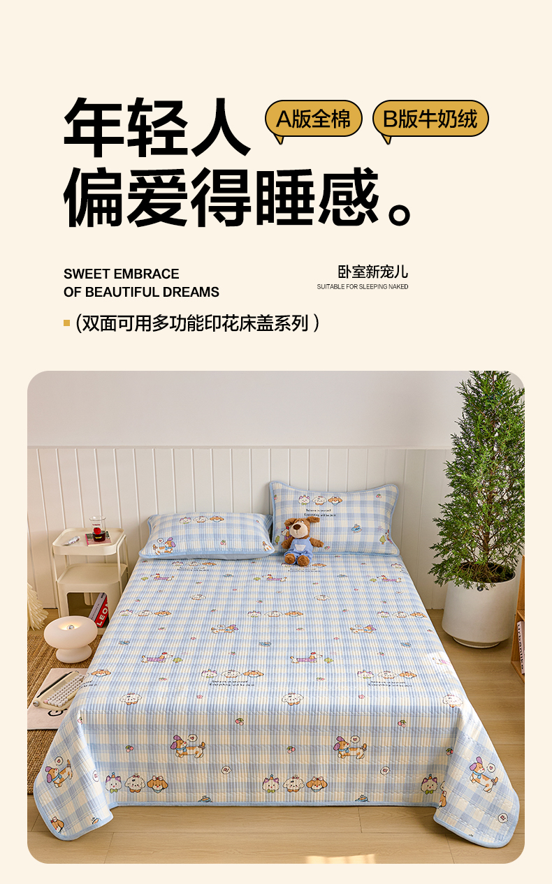 当前位置: 91家纺网 > 商品网购 > 床上用品 > 床盖 > X猫先生 2026新品A全棉B牛奶绒床盖一面全棉一面牛奶绒床盖炕盖加厚床单床垫四季款系列三 逗号日记(A棉B绒)