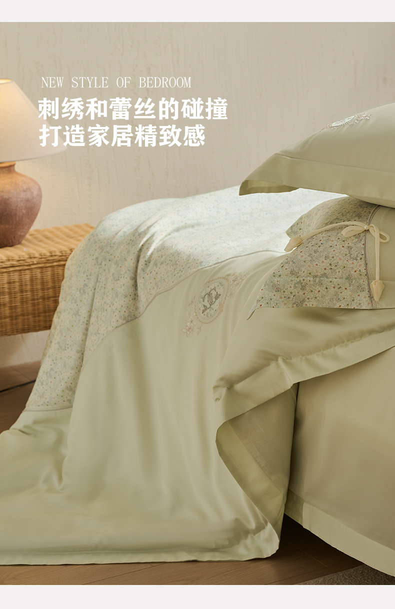 (总)诗黛尔 2026春夏新款提花长绒棉拼接刺绣四件套格蕾丝系列(会员-20),格蕾丝-梵星绿,格蕾丝-公主粉,格蕾丝-奶昔白,格蕾丝-时尚紫,格蕾丝-云石灰