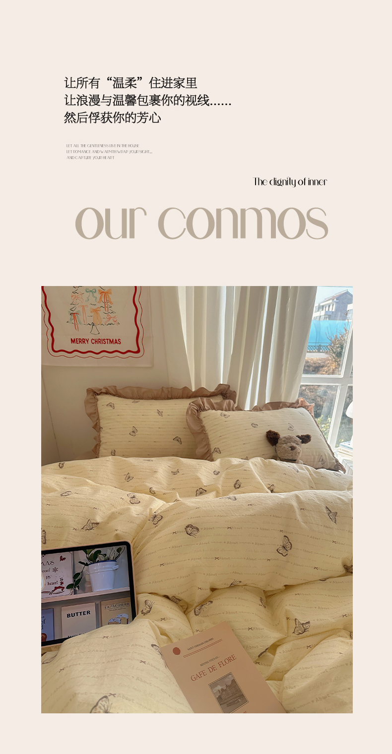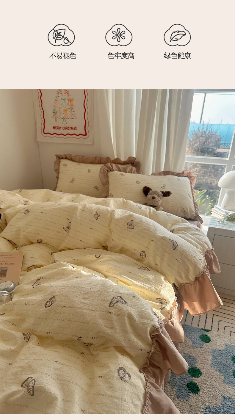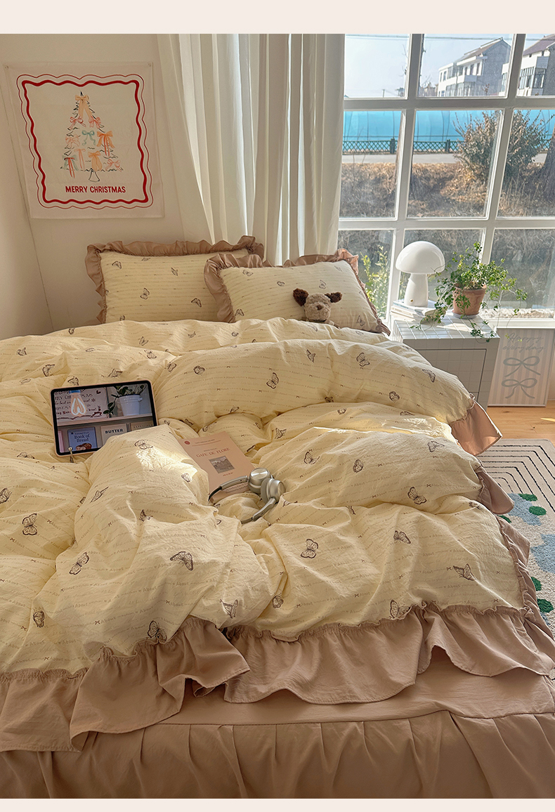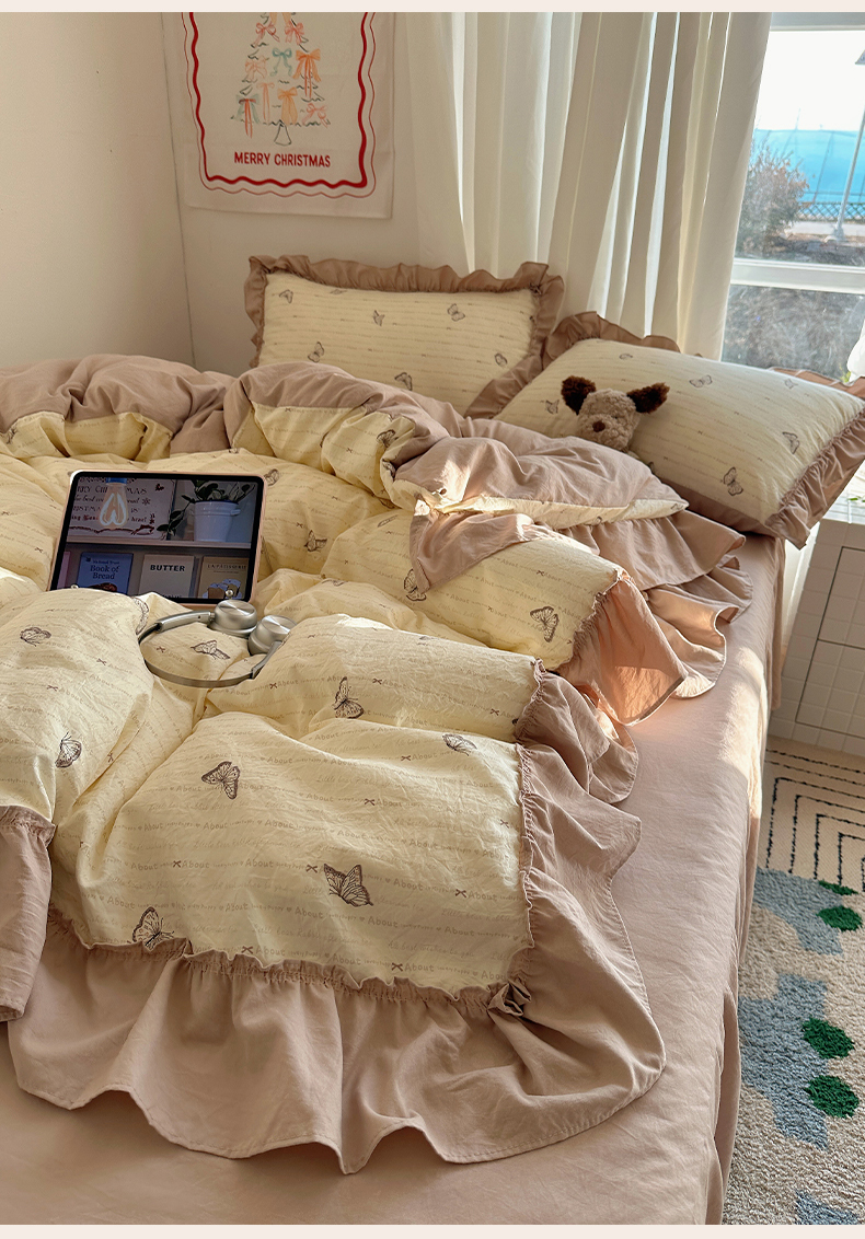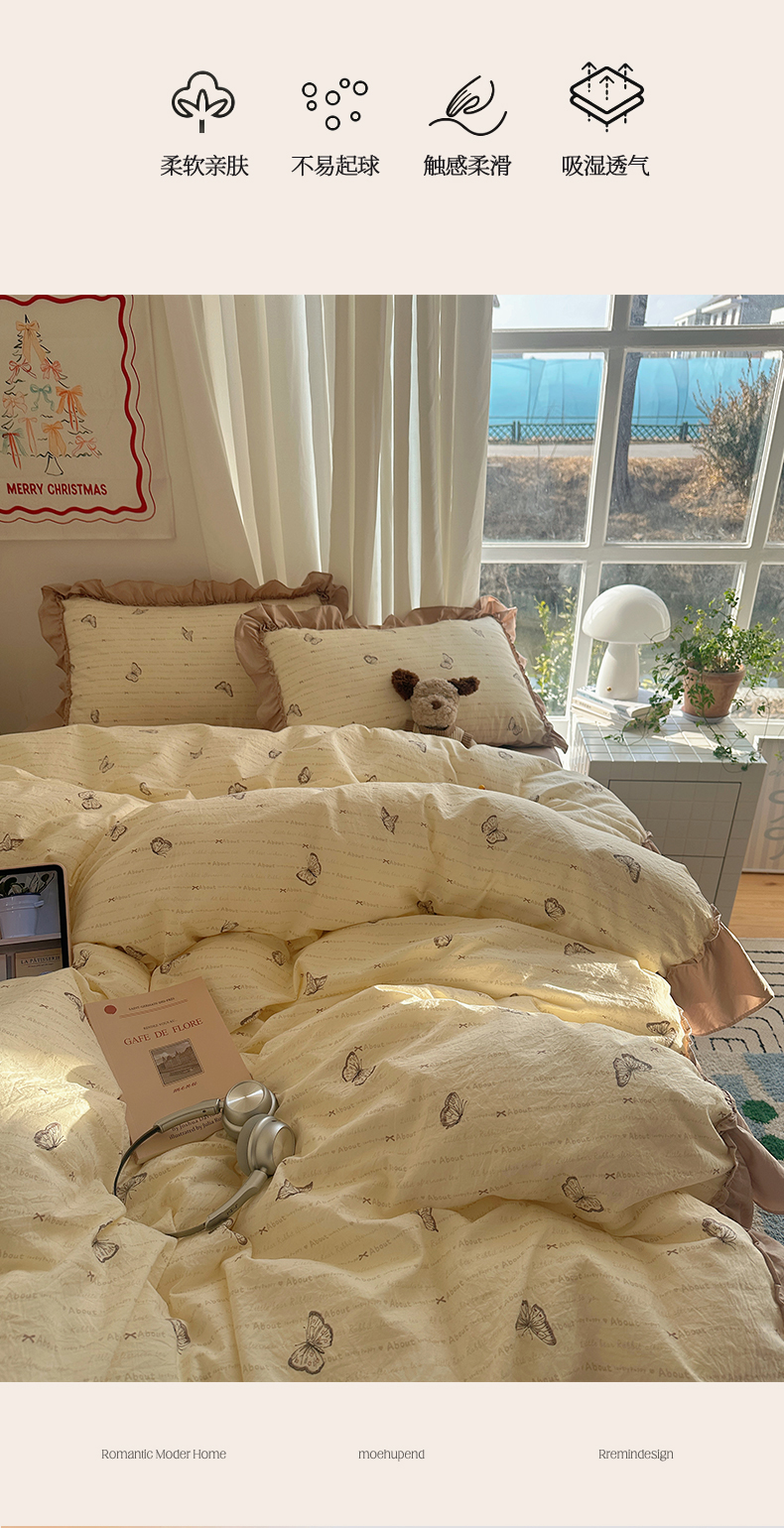 当前位置: 91家纺网 > 商品网购 > 床品套件 > 四件套 > 其它四件套 > 韩都家居 2026新款韩系大花边系列古棉四件套 蝴蝶