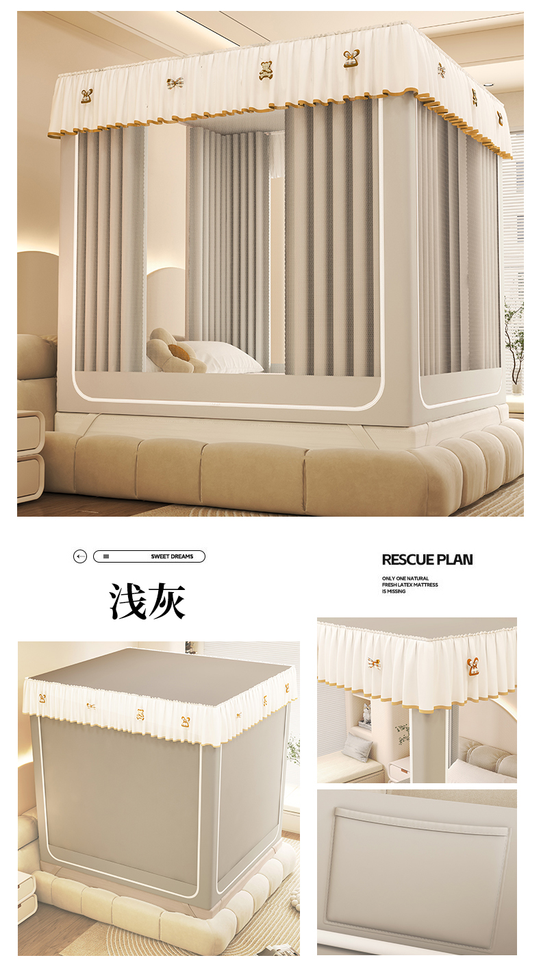 商品名称:初心家纺 2026春夏新款DIY小熊防尘顶遮光坐床蚊帐 浅灰 (五面遮光)