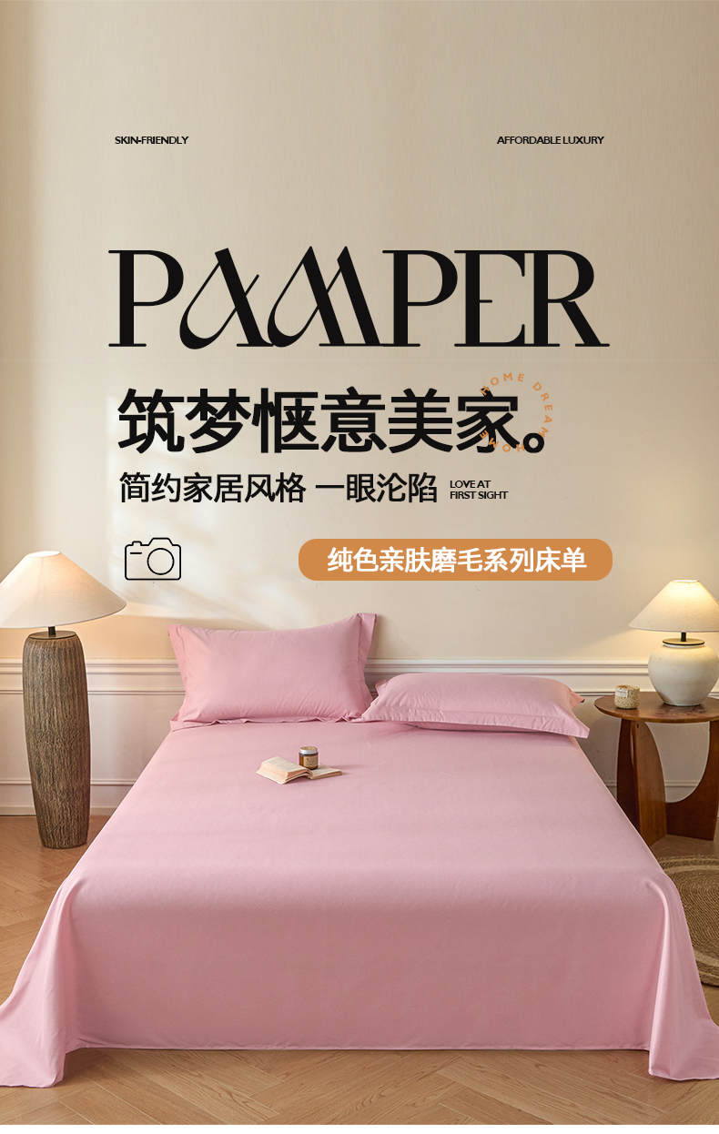 • 91家纺网 家纺一手货源 找家纺 露梦家纺 2026外贸内销跨境电商亚马逊速卖通磨毛单床单三件套欧美尺寸多多跨境平台TEMU 方格-粉色