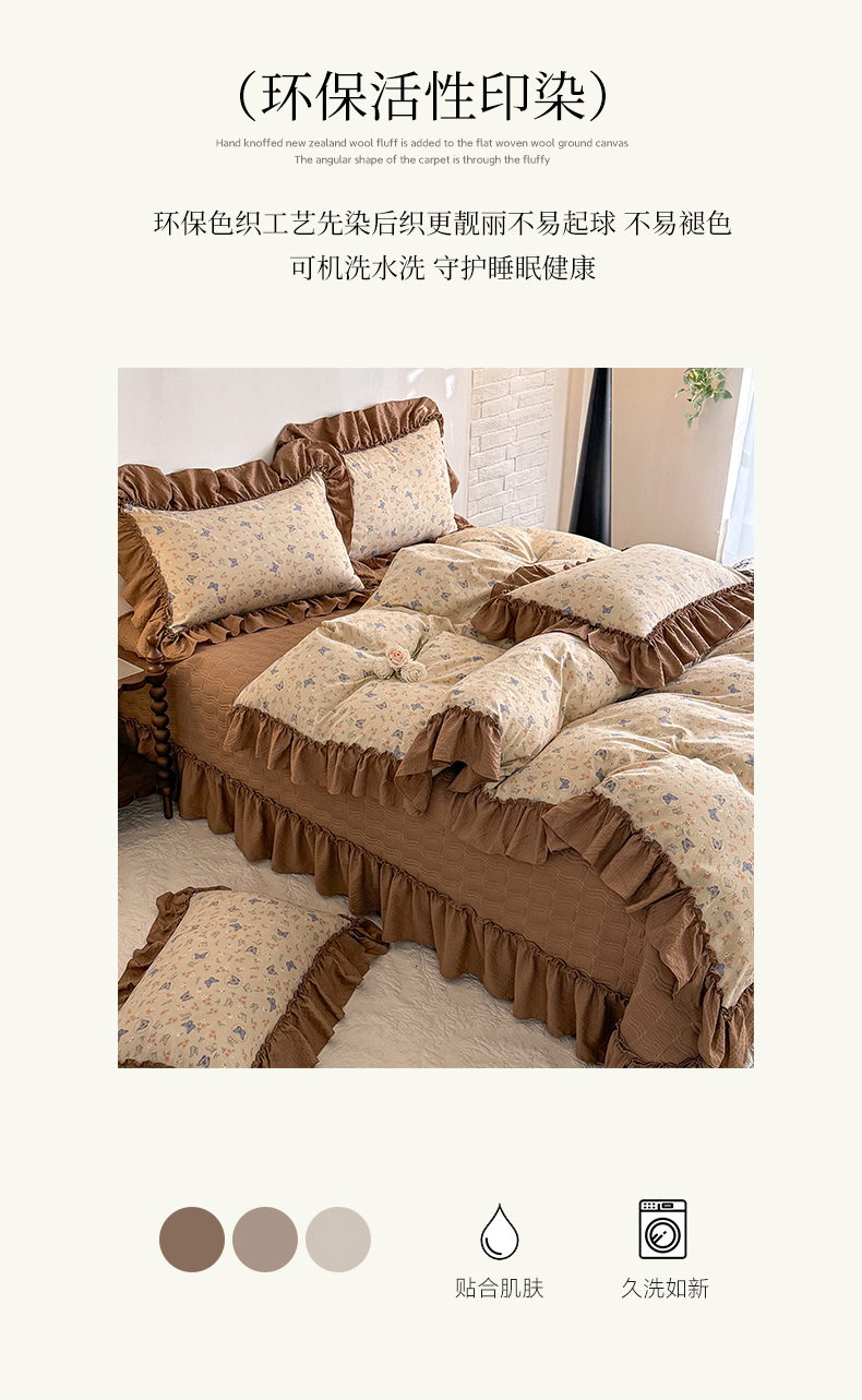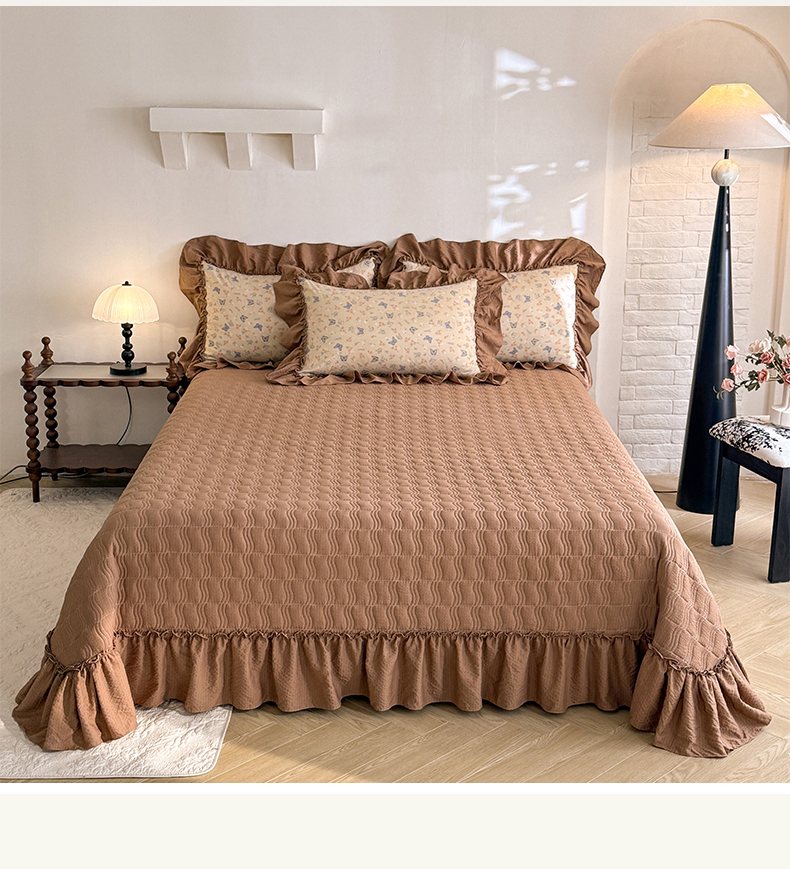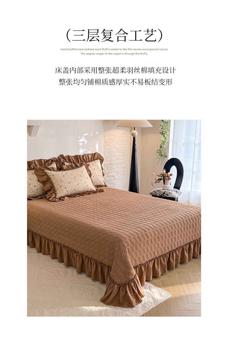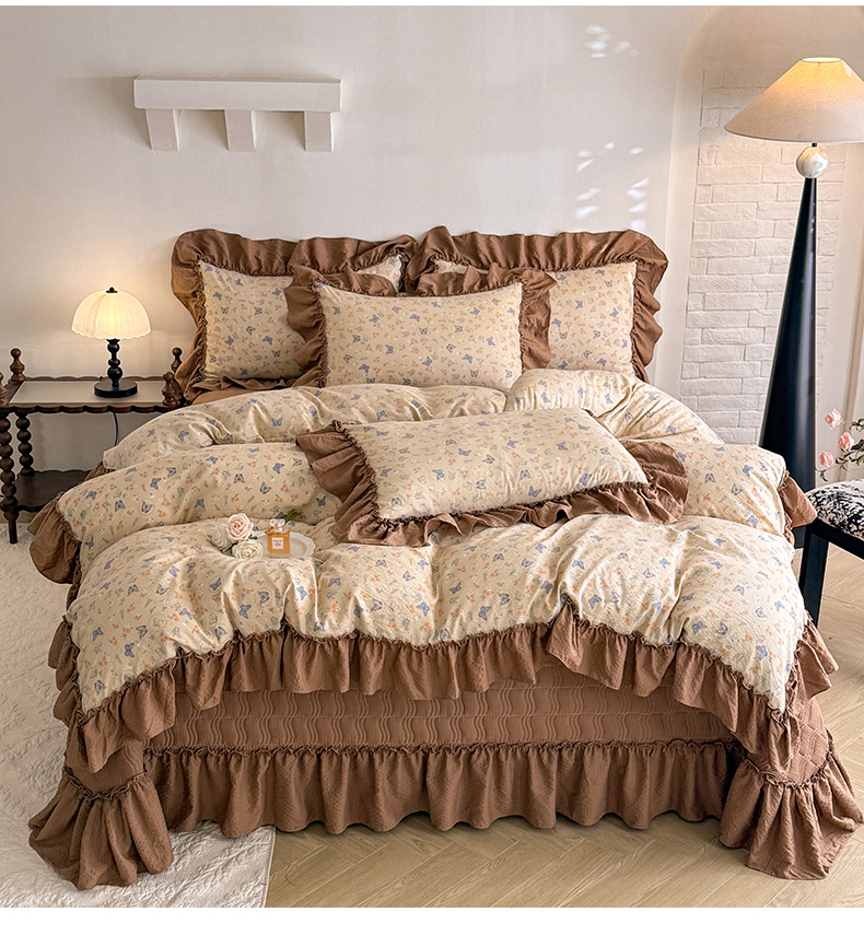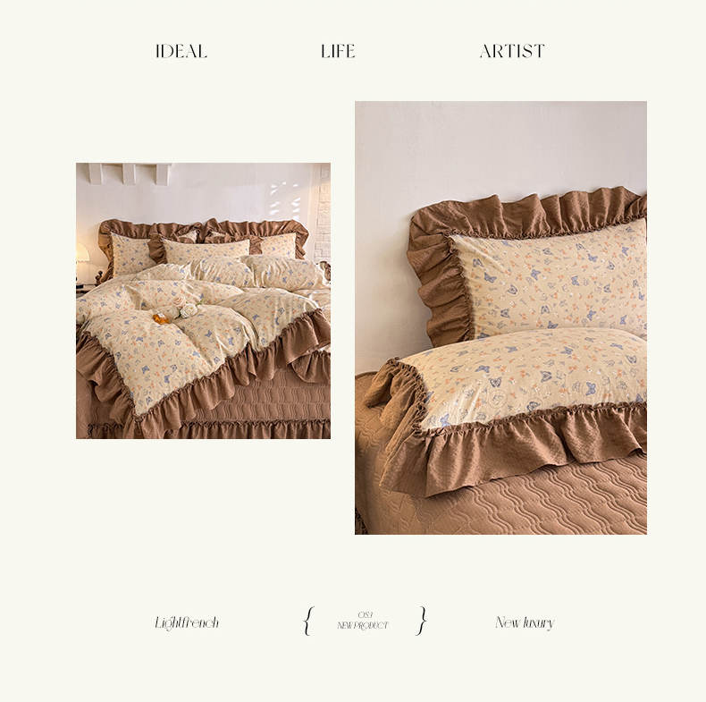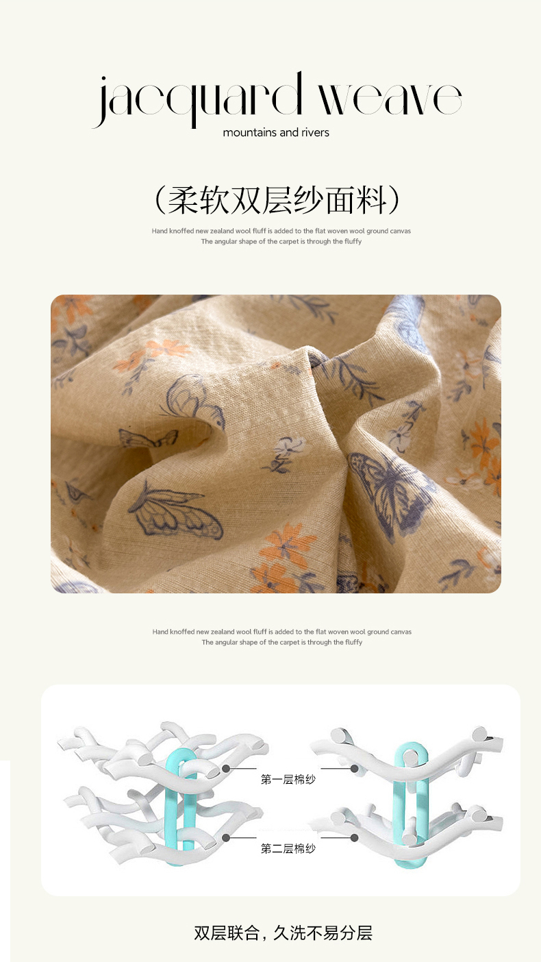 当前位置: 91家纺网 > 商品网购 > 床品套件 > 四件套 > 双层纱四件套 > 贝凯瑞 2026新款双层纱木棉水洗棉法式复古花边床盖单件三件四件套-焦糖系列 焦糖蓝蝶
