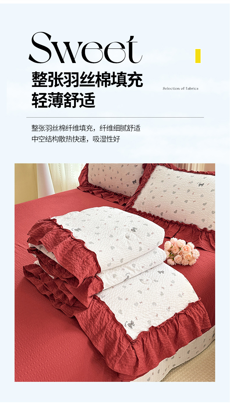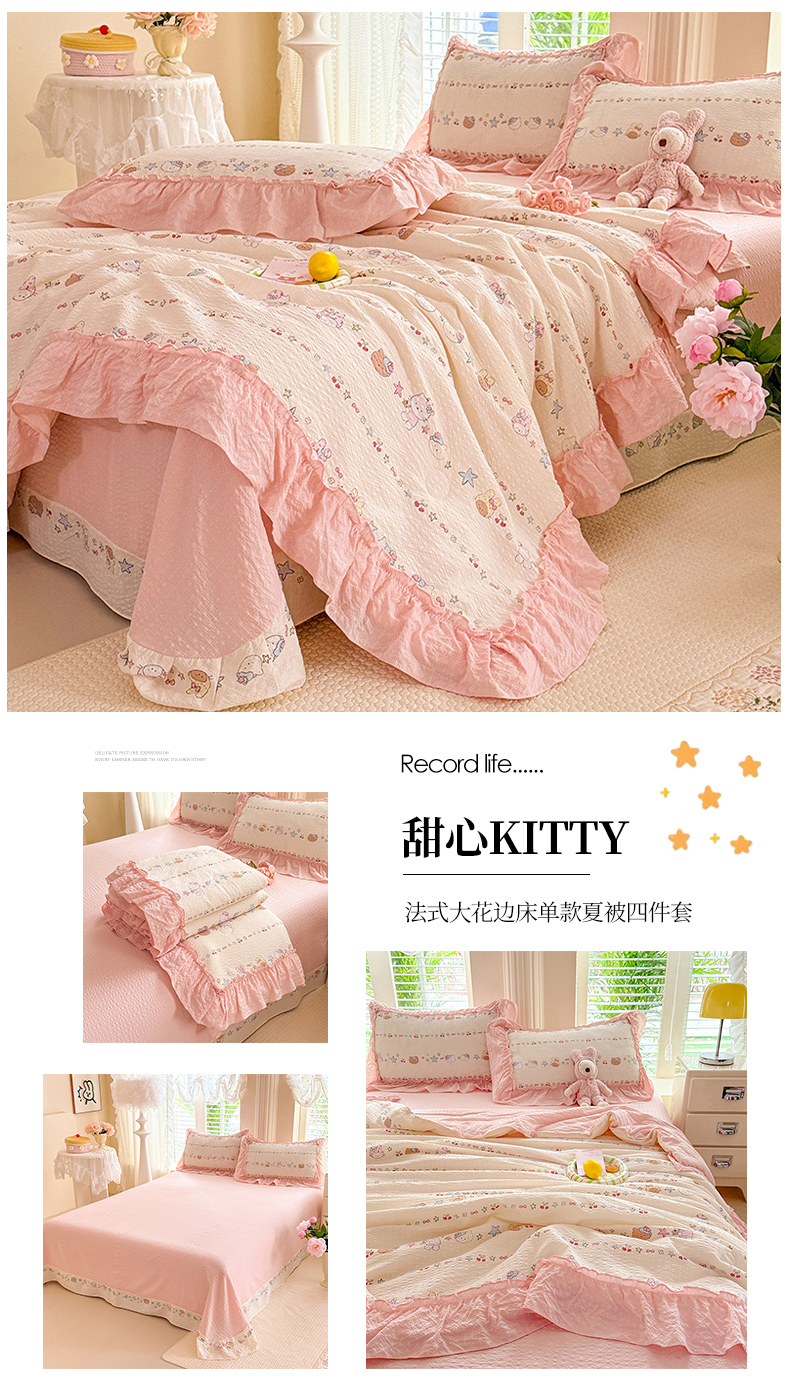 (总)韩约家纺 2026新款法式大花边泡芙棉床单款夏凉被空调被被套四件套