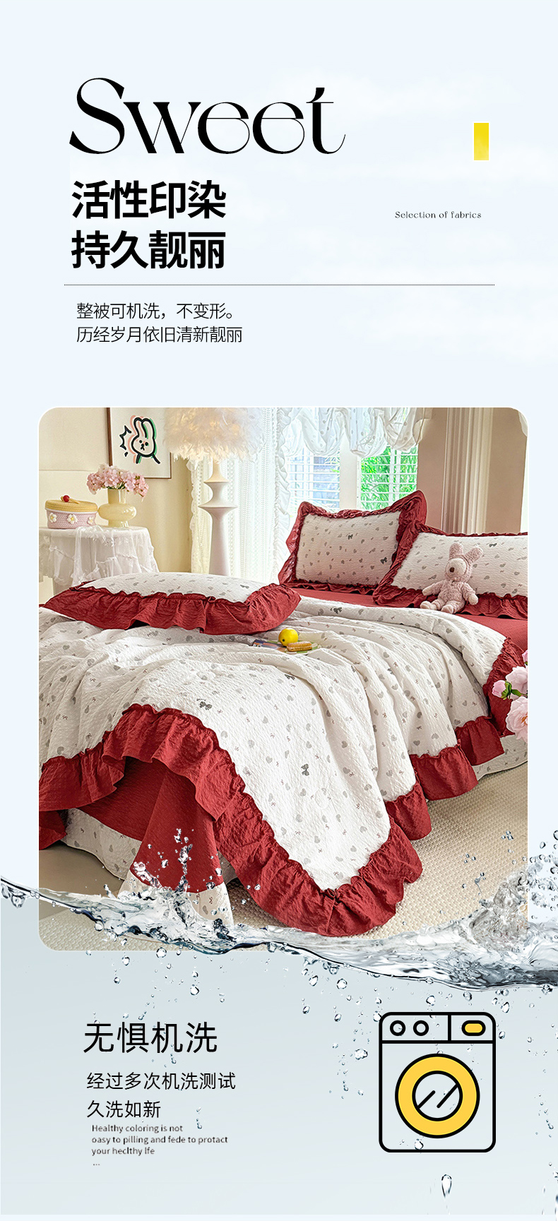 (总)韩约家纺 2026新款韩式双层花边古法棉感床盖四件套,安妮,豹纹女孩,彩心,繁花似锦,蝴蝶伙伴,萌萌兔,柔梦,甜心樱桃