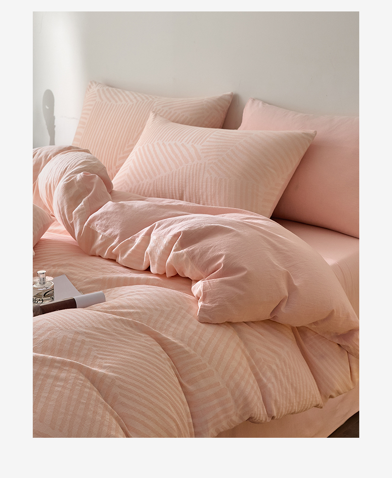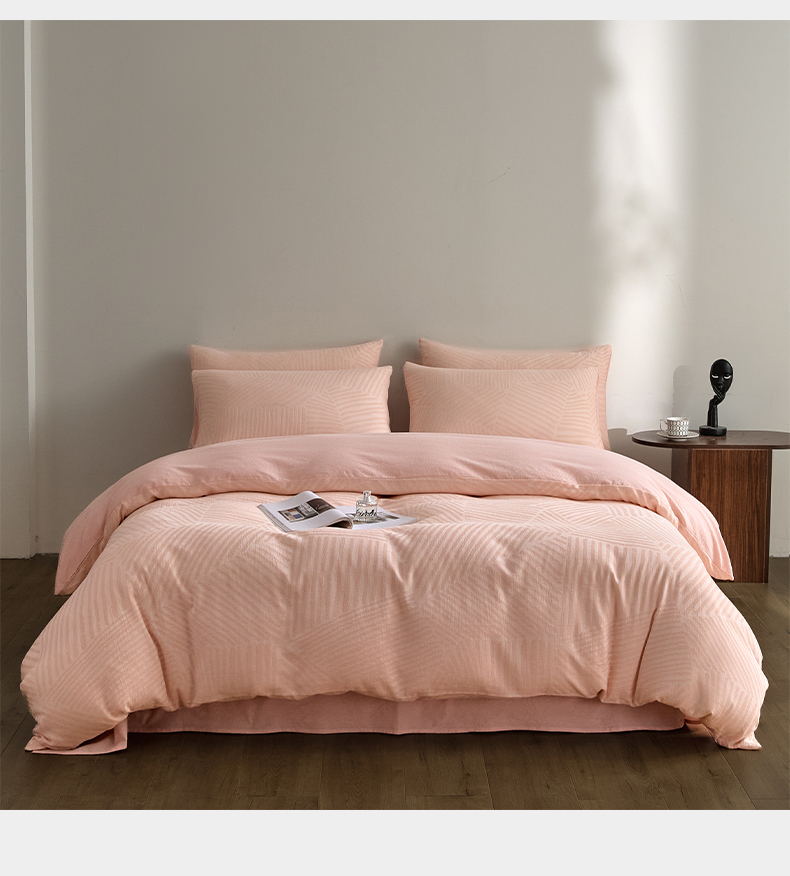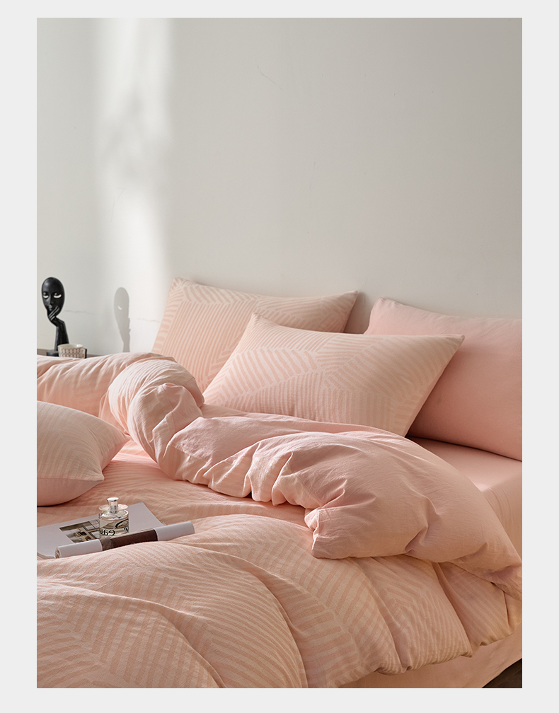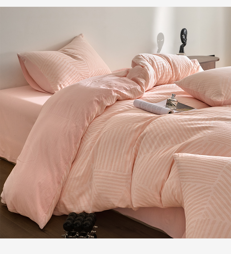 如一 2026新款A类色织提花全棉双层纱水洗棉四件套 序章粉