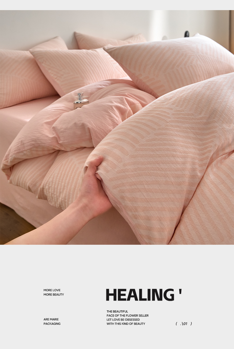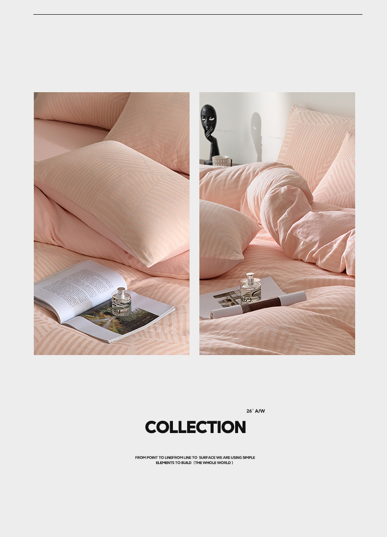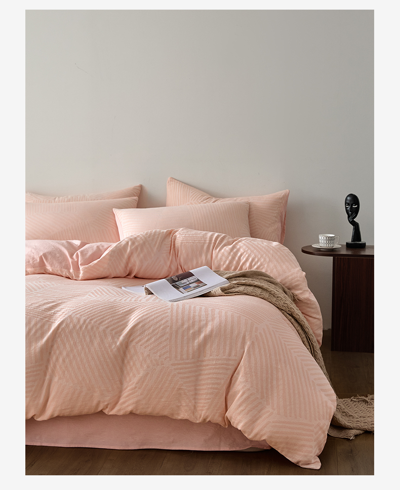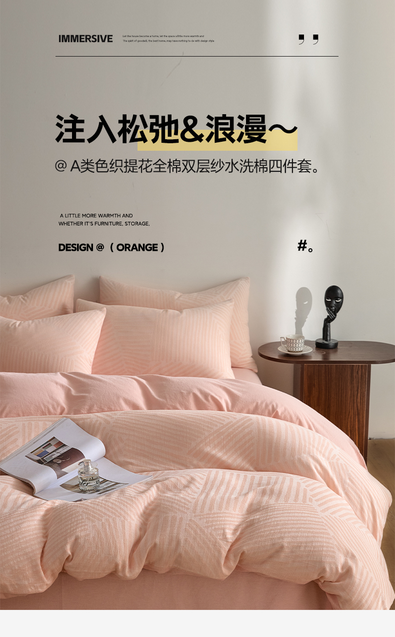 如一 2026新款A类色织提花全棉双层纱水洗棉四件套 序章粉