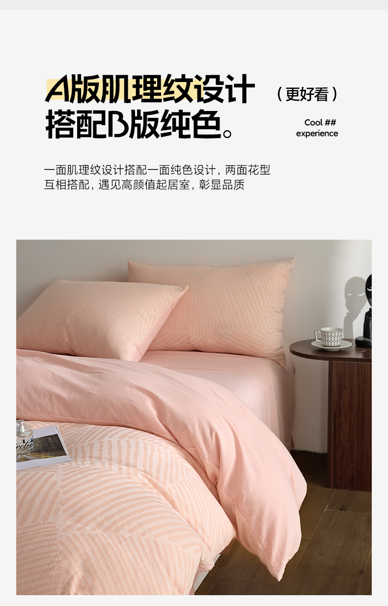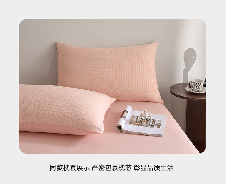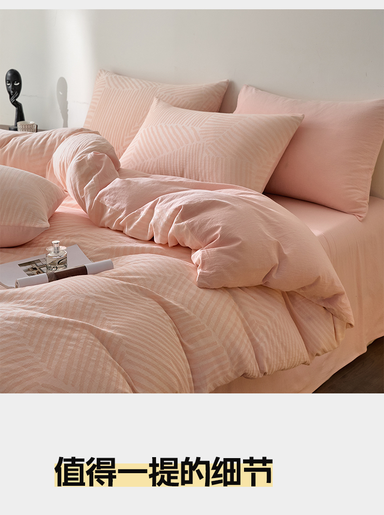 商品名称:如一 2026新款A类色织提花全棉双层纱水洗棉四件套 序章粉