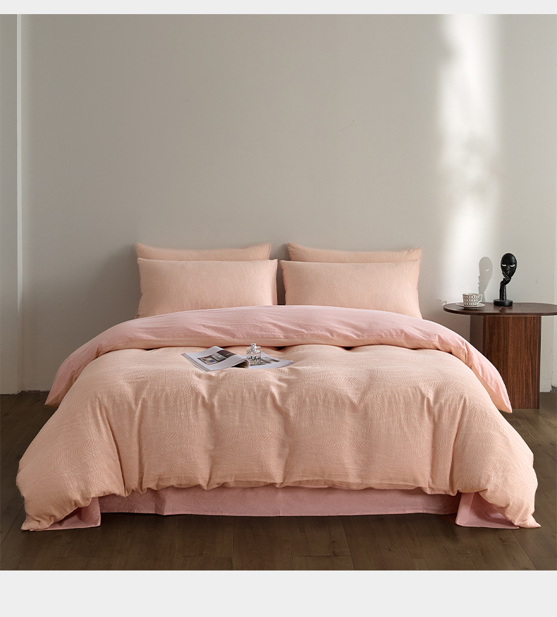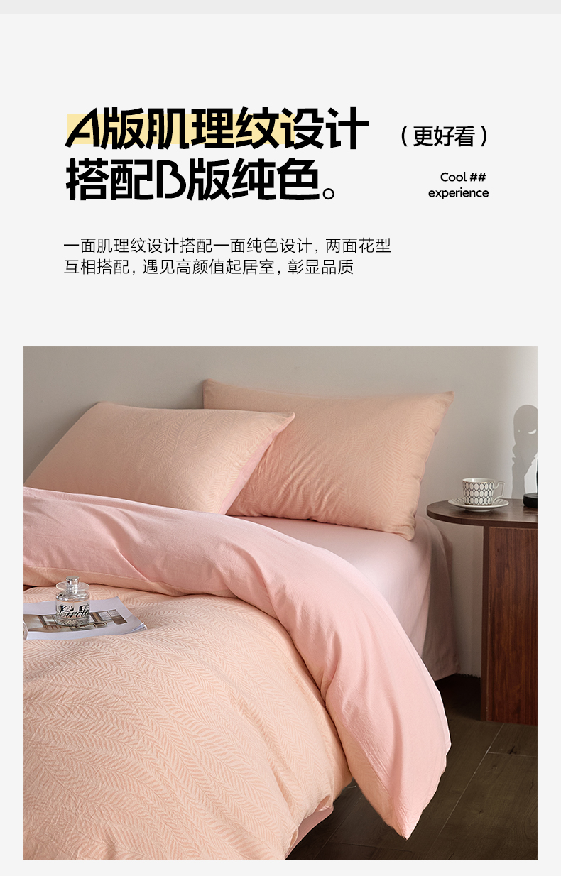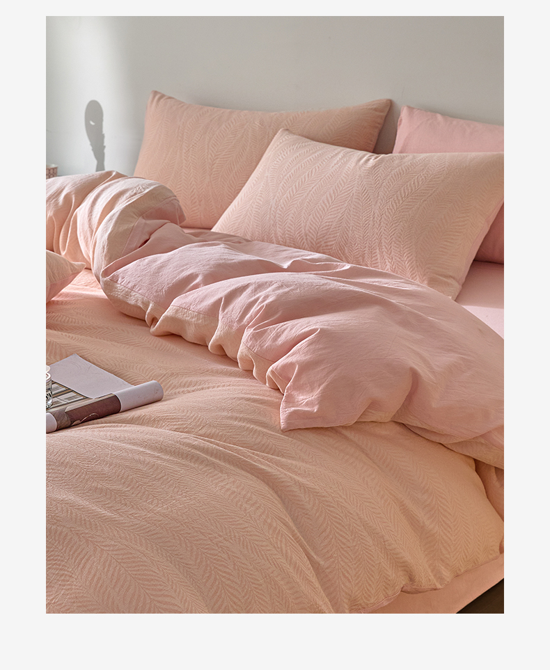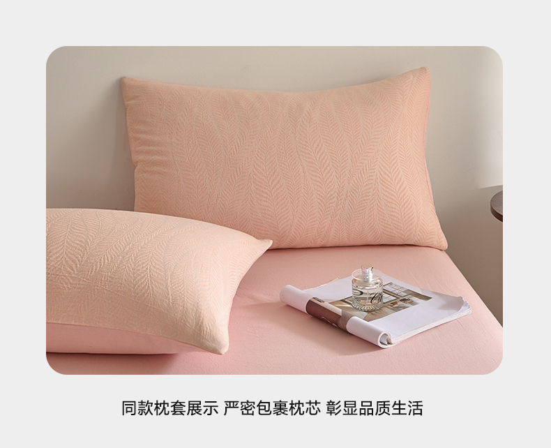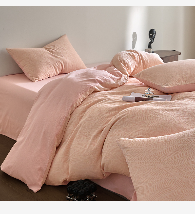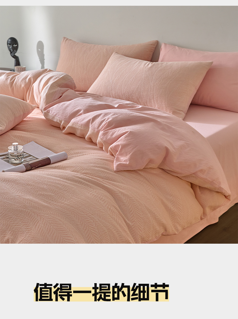 商品名称:如一 2026新款A类色织提花全棉双层纱水洗棉四件套 叶笙粉