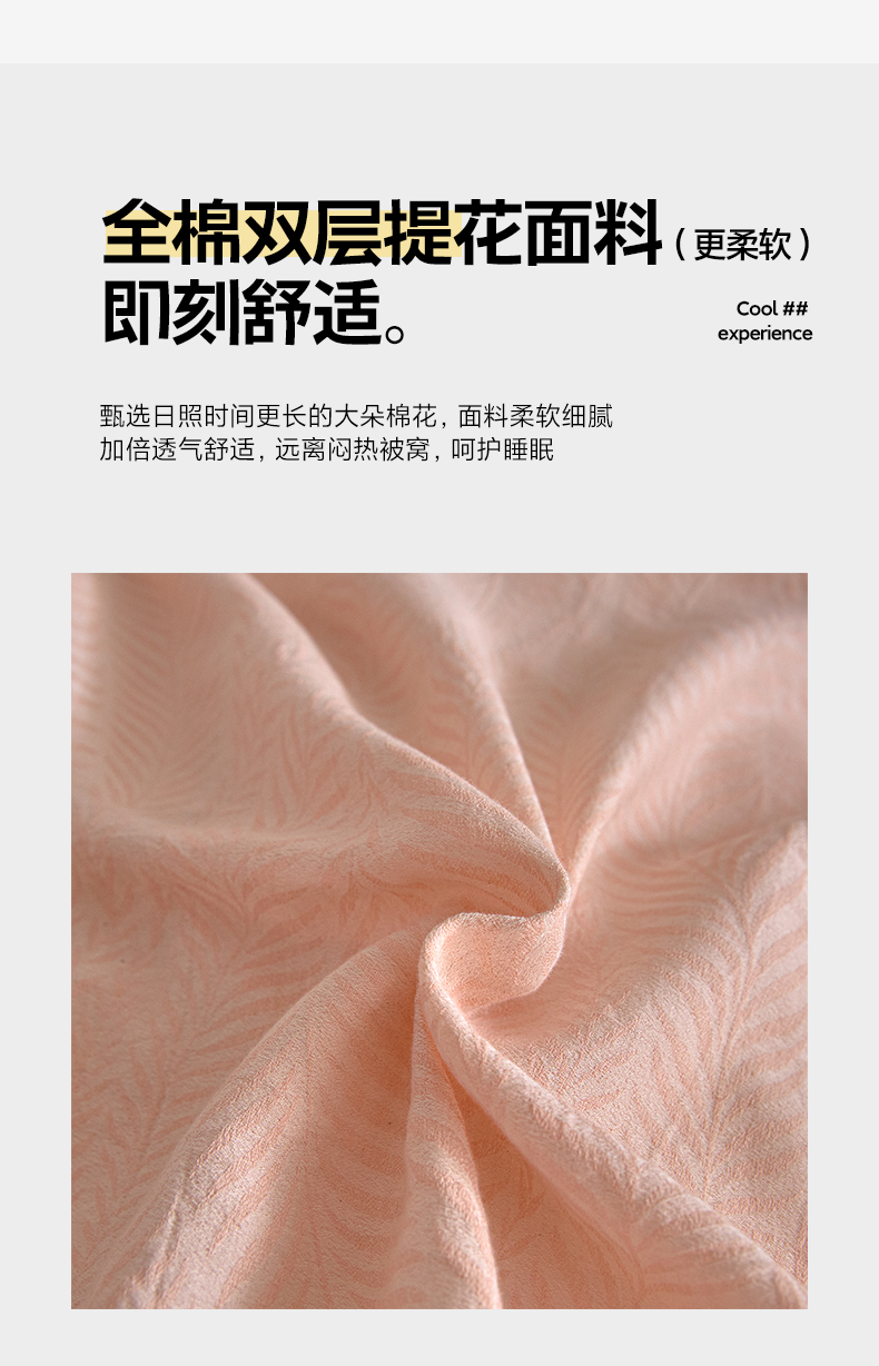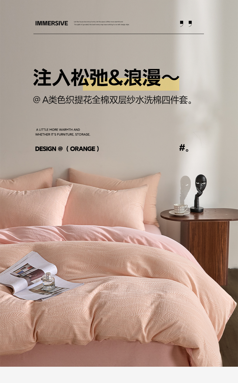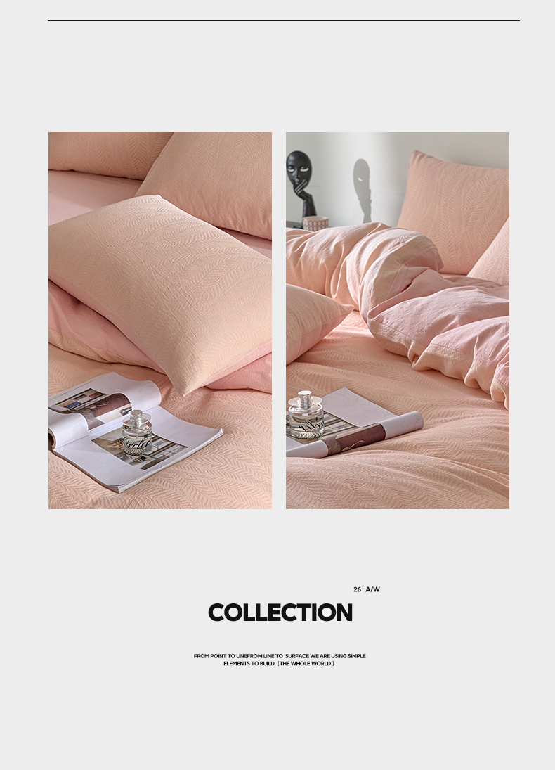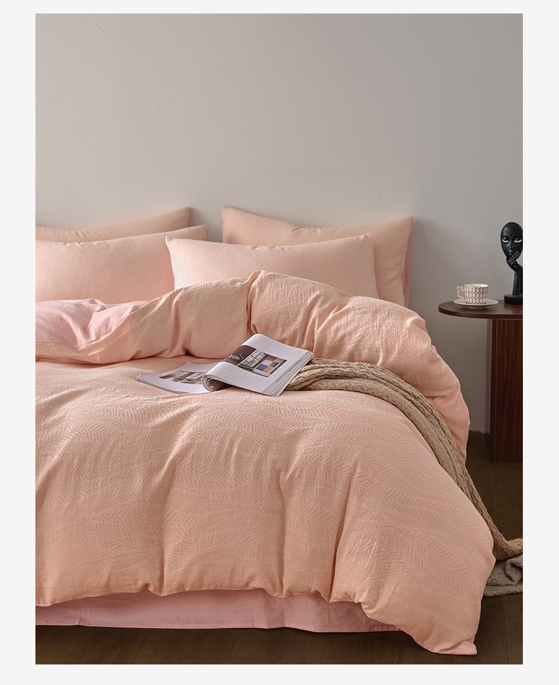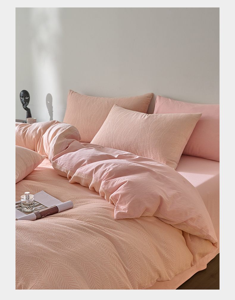 商品名称:如一 2026新款A类色织提花全棉双层纱水洗棉四件套 叶笙粉