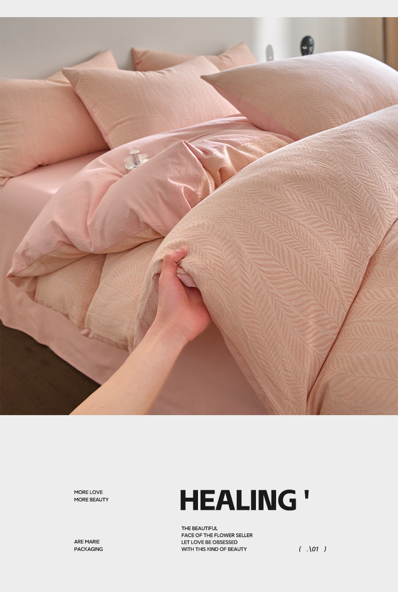如一 2026新款A类色织提花全棉双层纱水洗棉四件套 叶笙粉