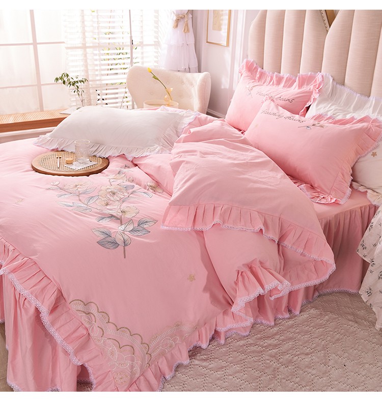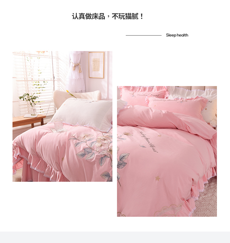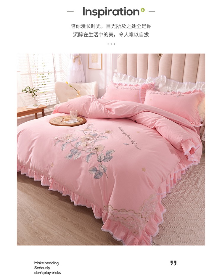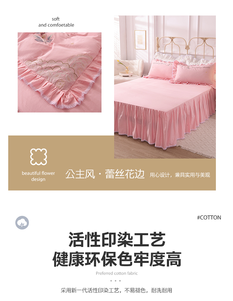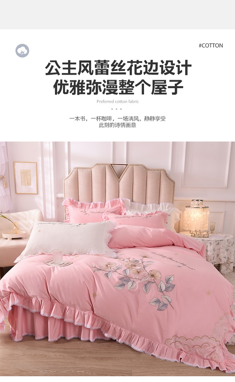 迪欧芙 2024春季纯棉13372公主风四件套爱的结语系列 爱的结语-粉,爱的结语-粉
