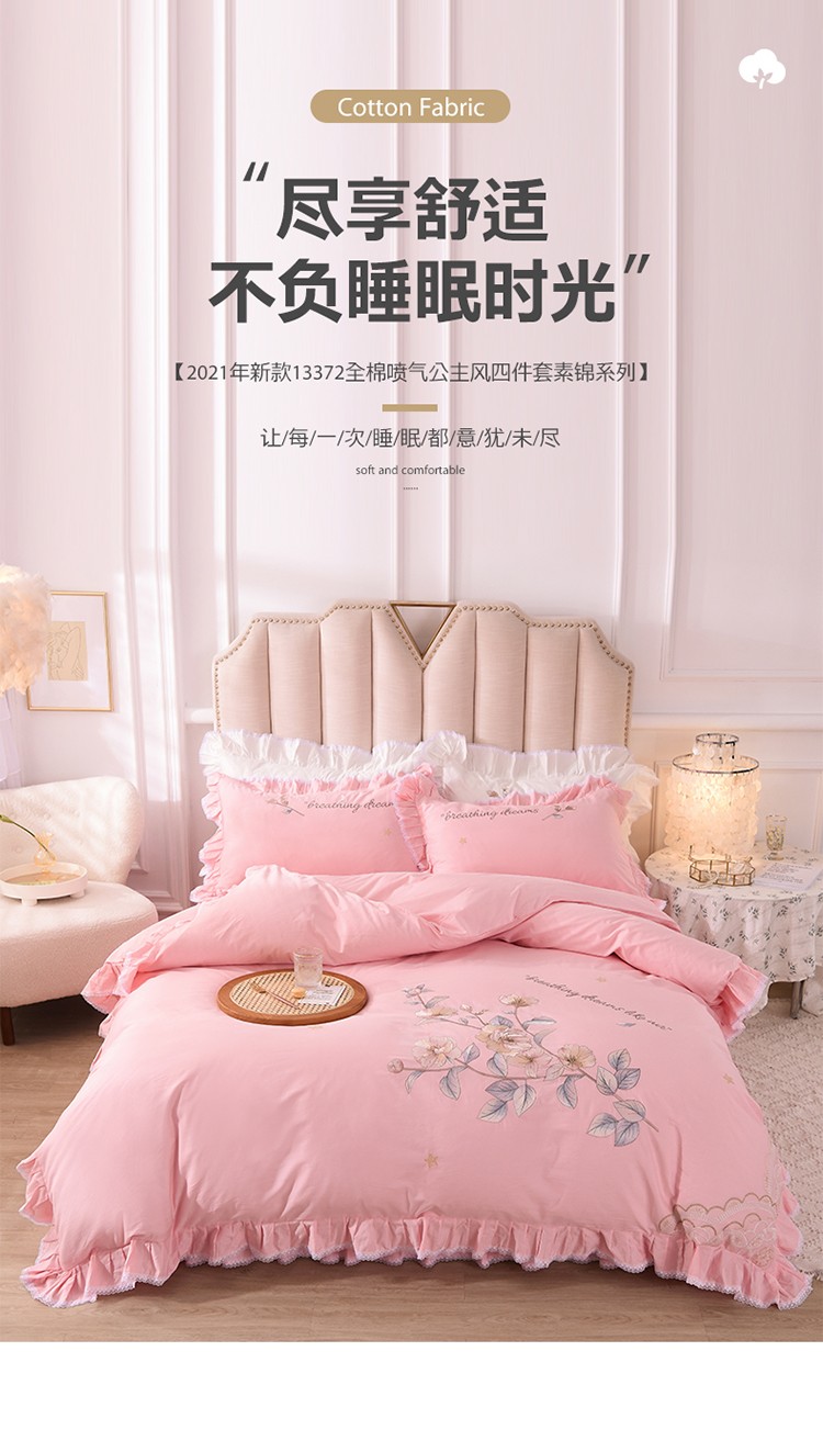 商品名称:迪欧芙 2023新款纯棉全棉喷气13372公主风素锦系列四件套粉色