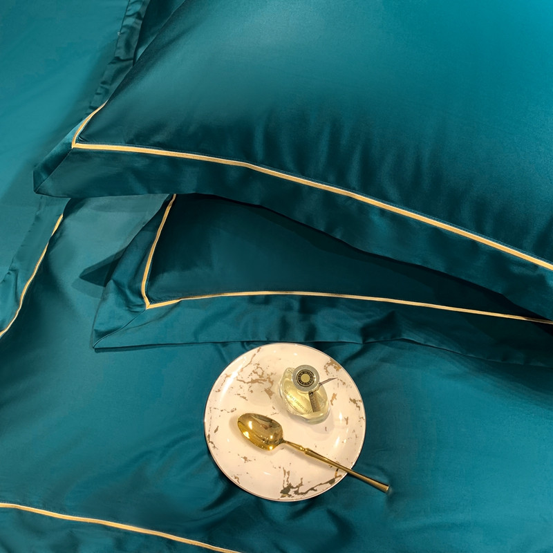 商品名称:榻尚家居2021新款长绒棉简约轻奢四件套 魅-孔雀蓝