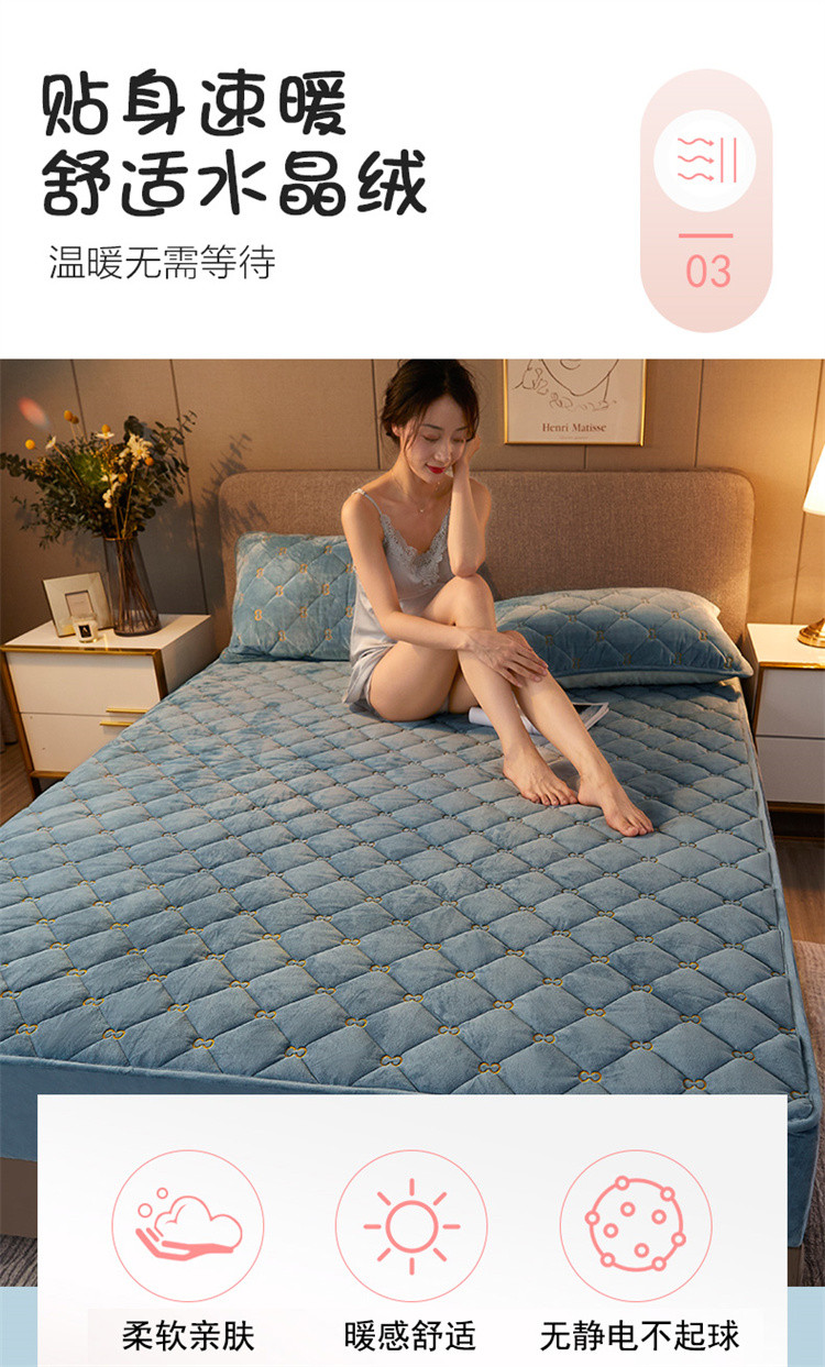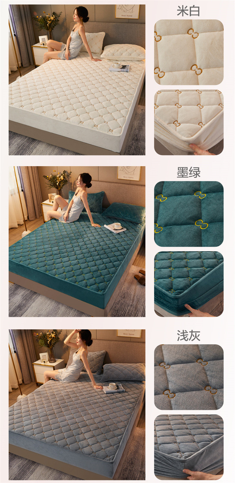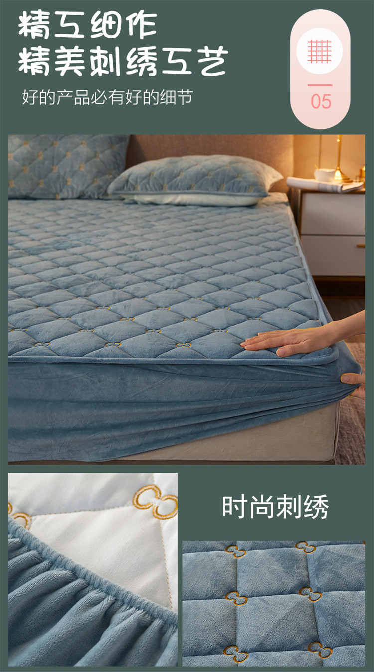 商品名称:(总)欧邦 新款纯色水晶绒刺绣夹棉床笠